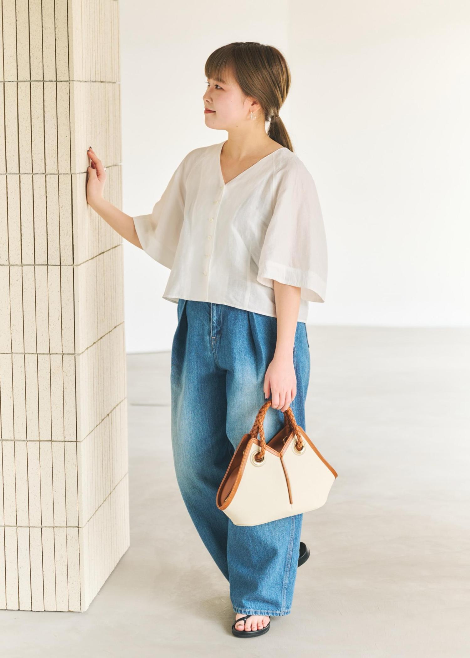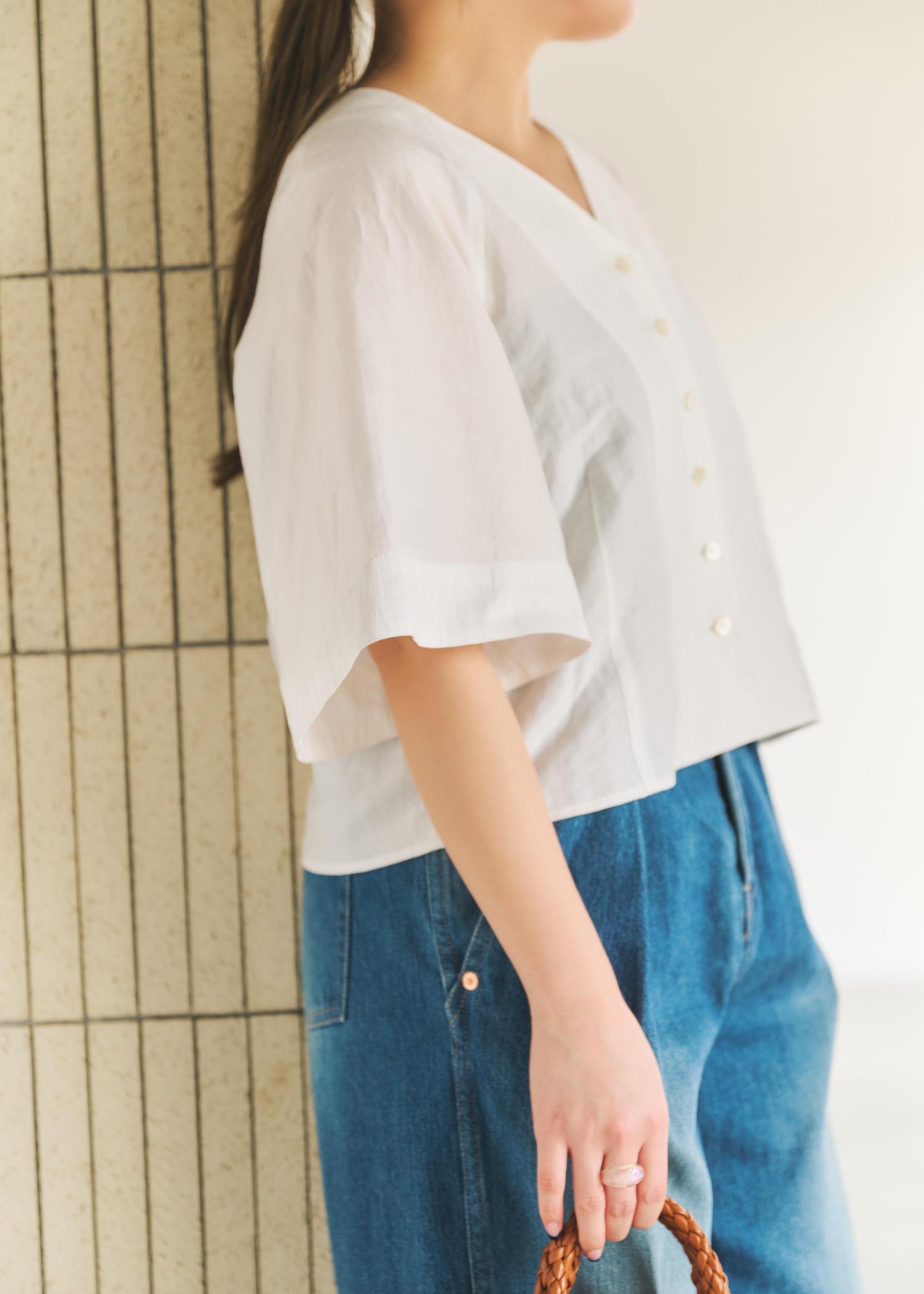 アウトレットROPÉカーディ半袖ブラウス/洗えるホワイト / F¥17,710レビュー前のボタンは全て開くので