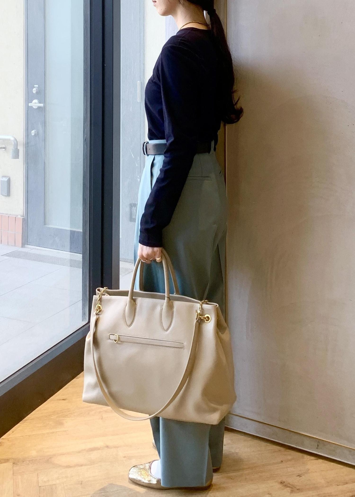柔らかい質感で容量たっぷり。口が大きく開くので使い心地も良く、一目で上質感がわかるバックです!