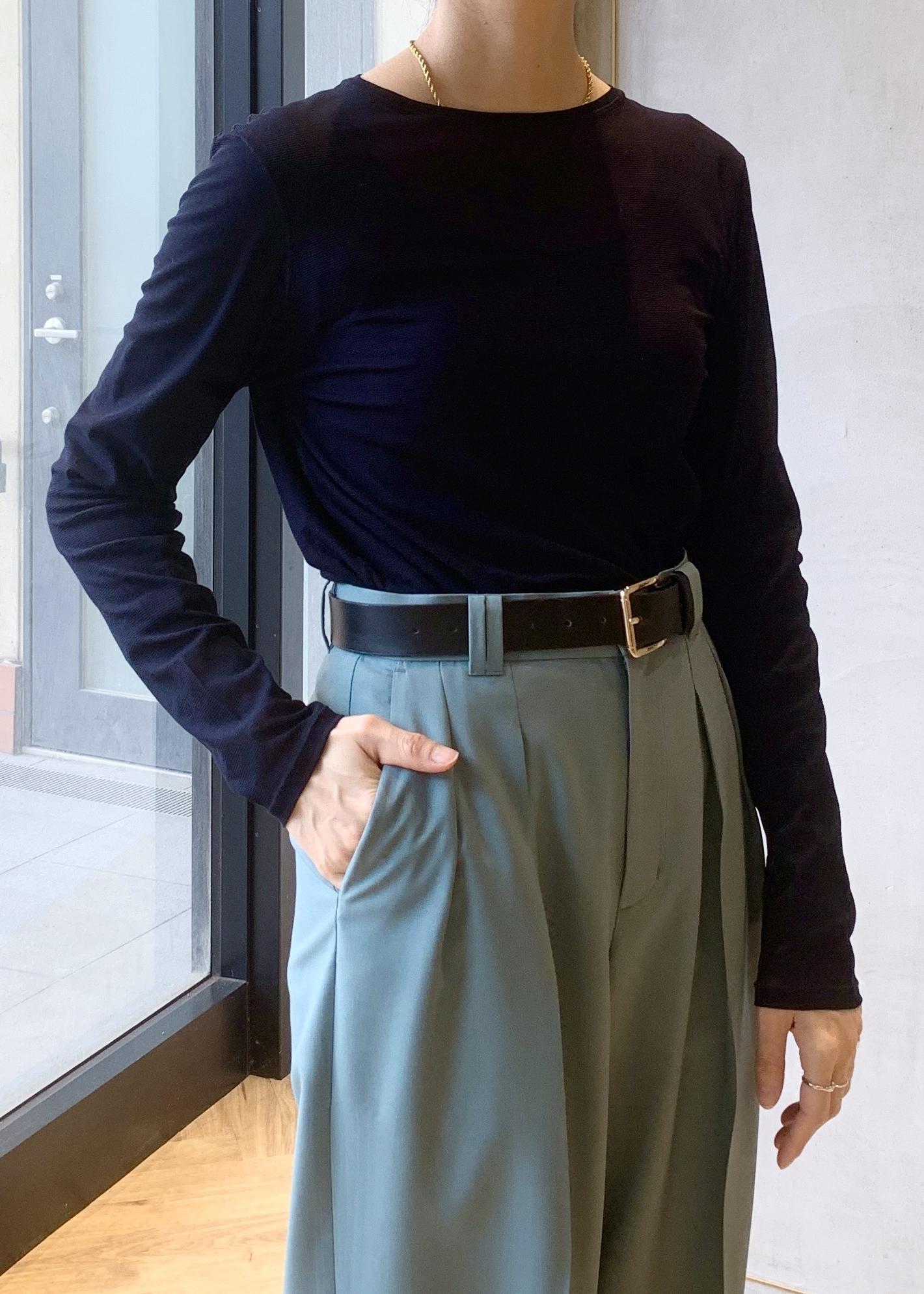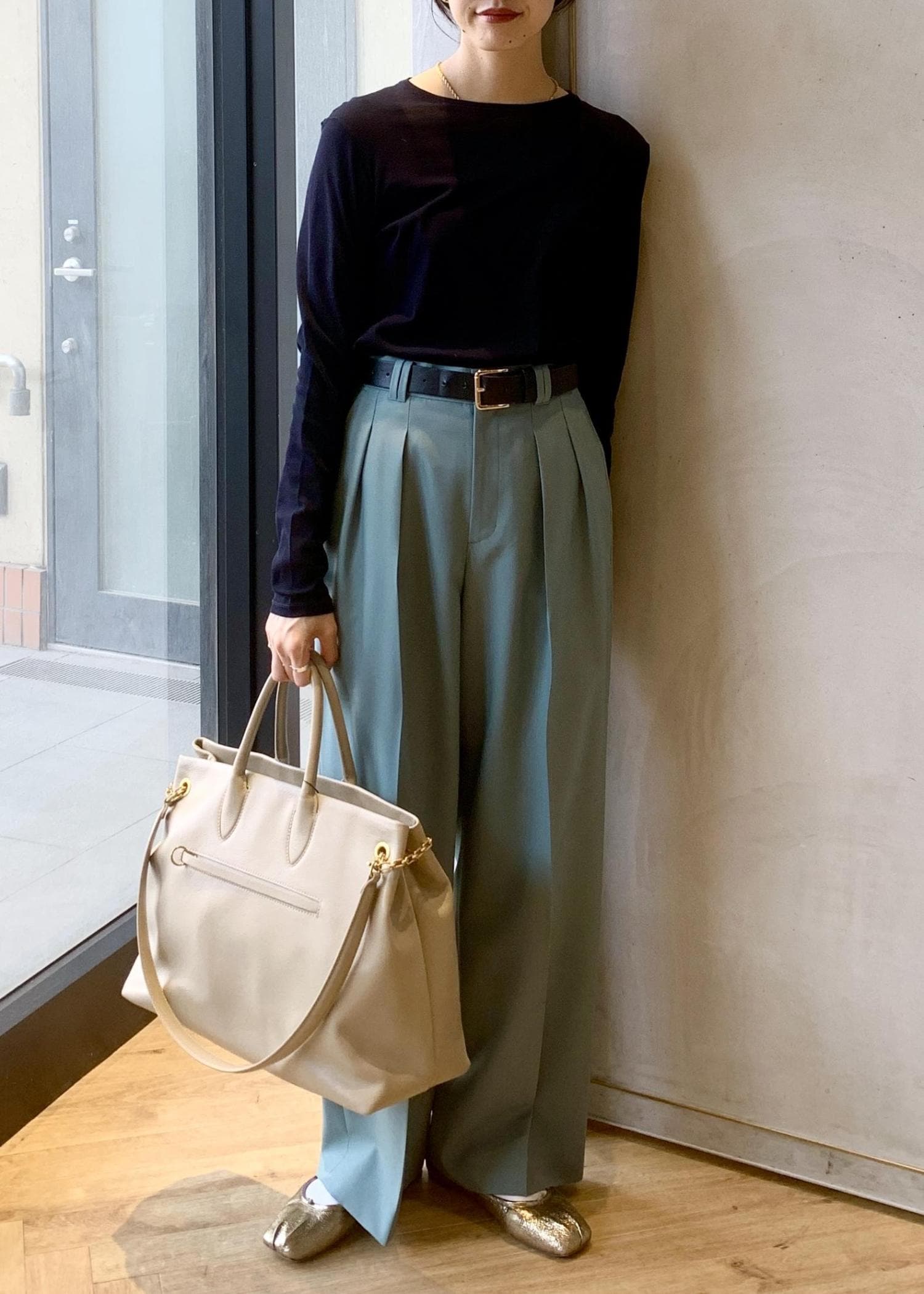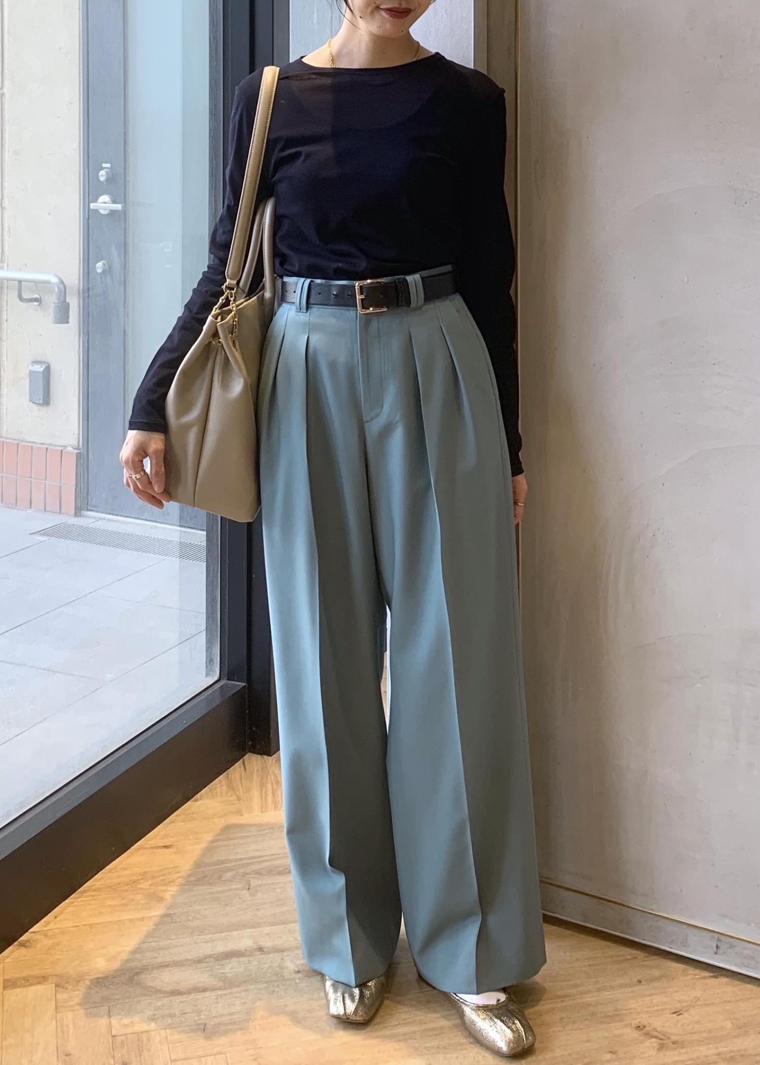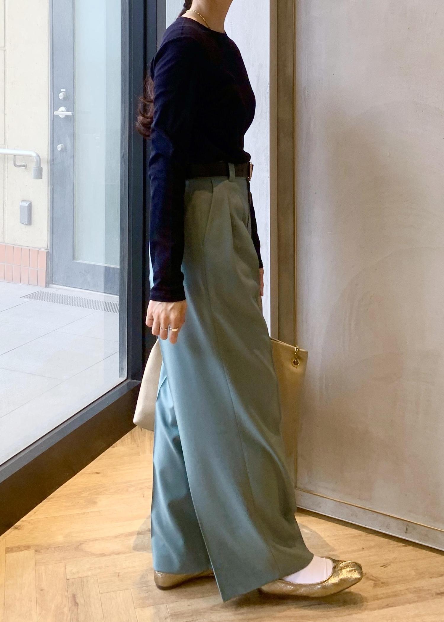 合わせたトップスも肌離れしてくれるドライタッチの質感なので、透け感も強すぎずデイリーに使いやすくおすすめアイテムです♪