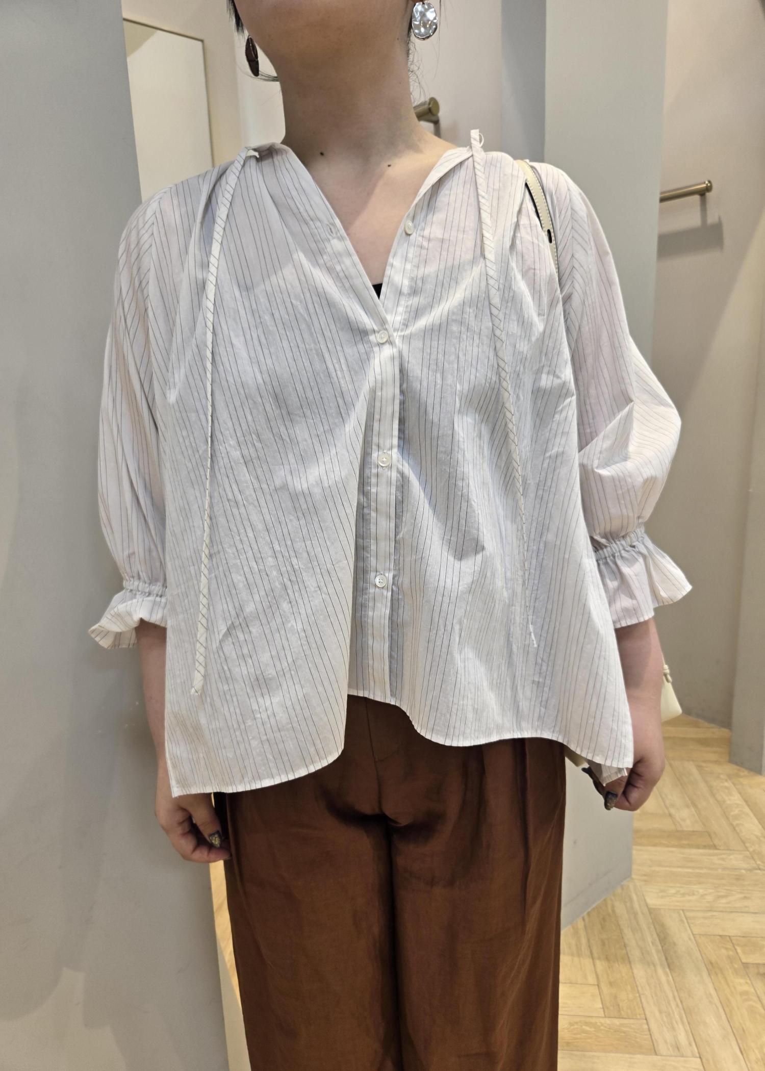 首元がスッキリ見えするようなデザインで見える分量もひもで調節できます。