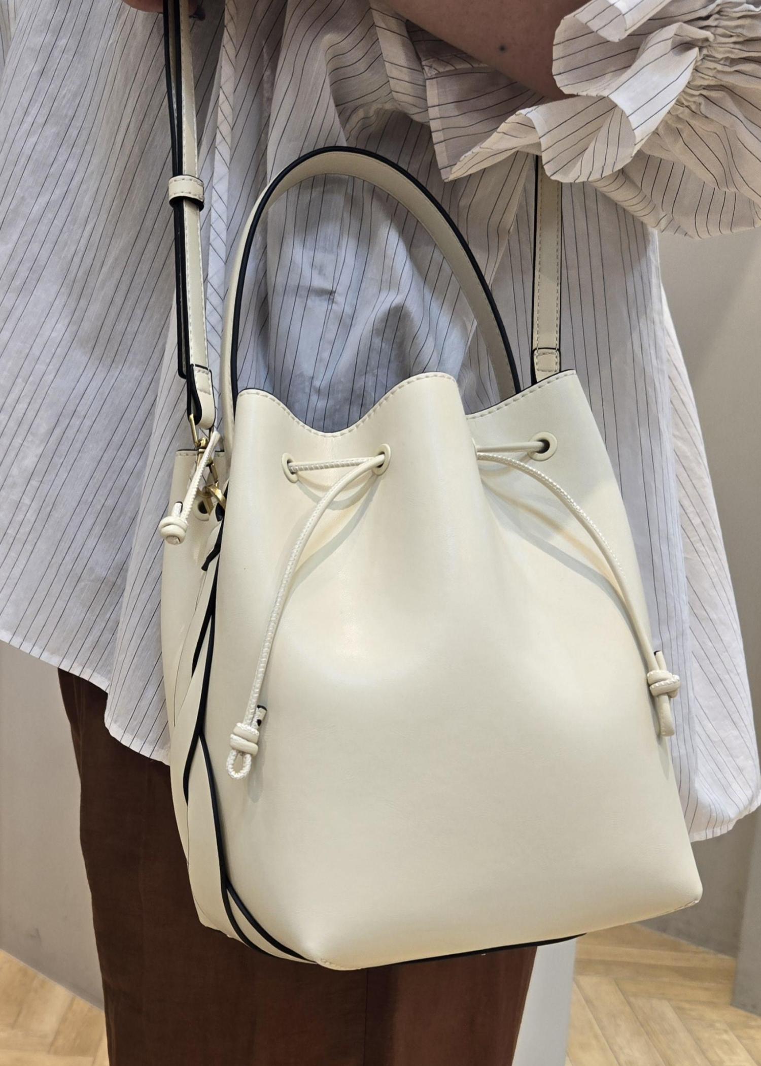 丸みのある形が可愛らしく、横のロープモチーフのデザインのところはステッチをいれずに縫われているのでスッキリとした印象になっております。