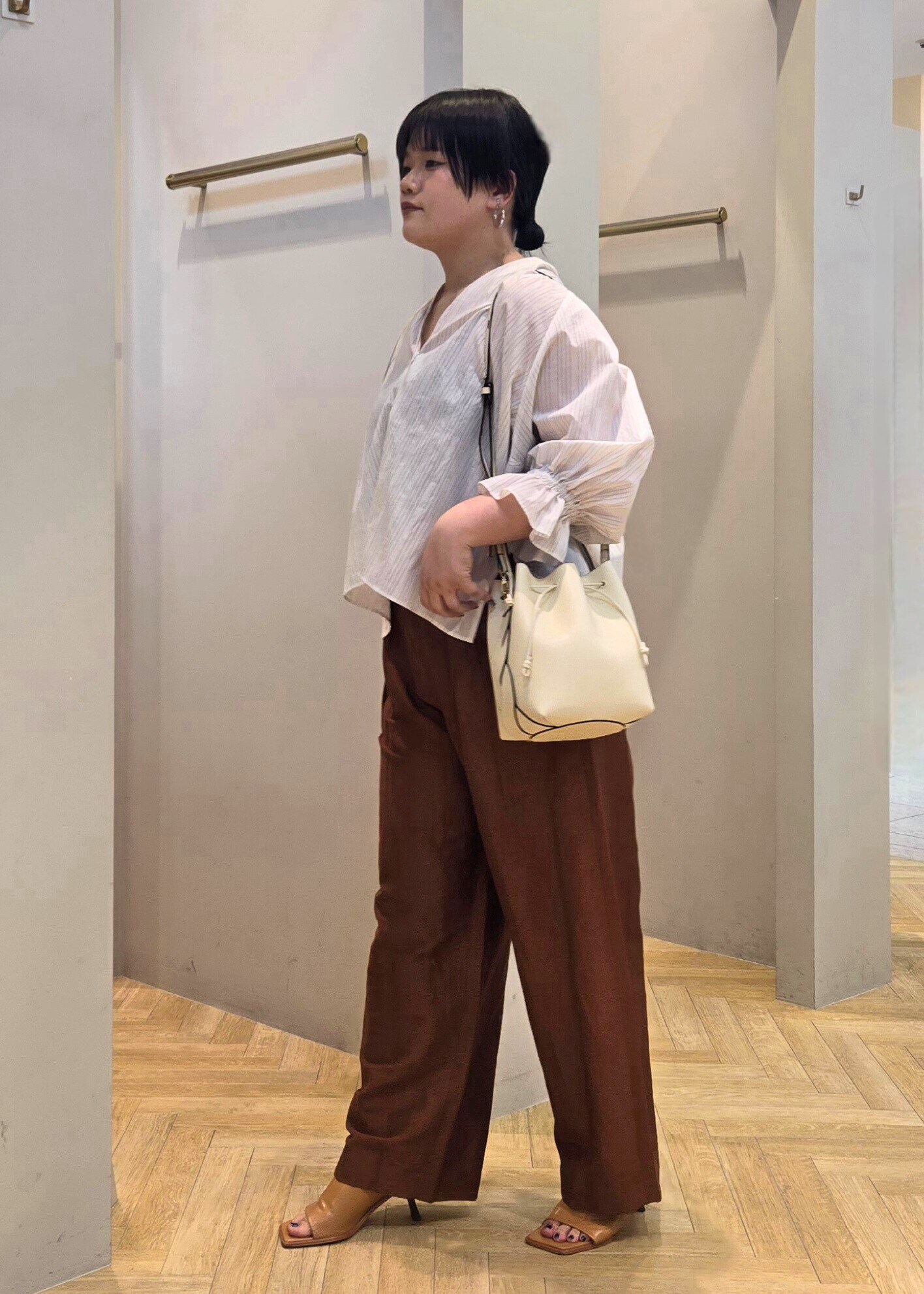 ボリューム感があり丸みのあるシルエットがパンツスタイルとあわせてもきれい目になりすぎずに着用できます。