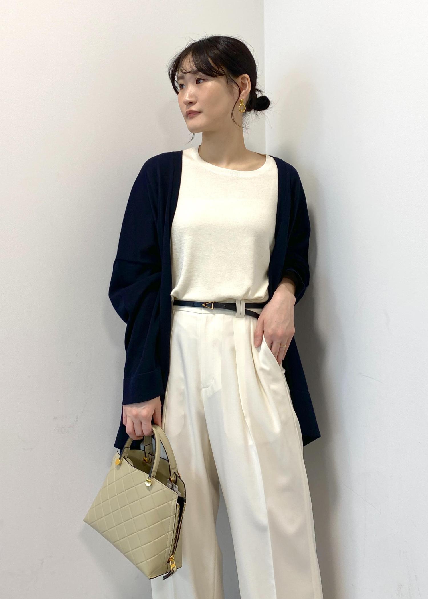 ホワイトカラーを軸に、カーディガンとベルトでコーディネートにメリハリをつけました♪