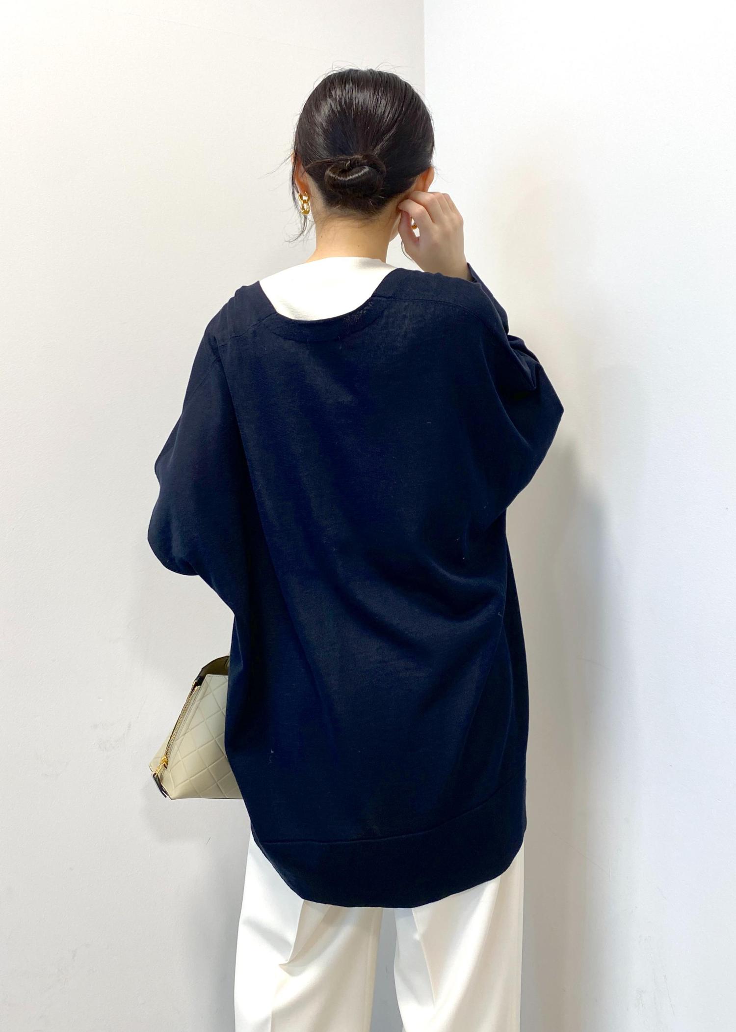 ゆったりとしたサイズ感なので、インナーはスッキリしたものを選ぶとよりスタイルアップして見えます◎ -
