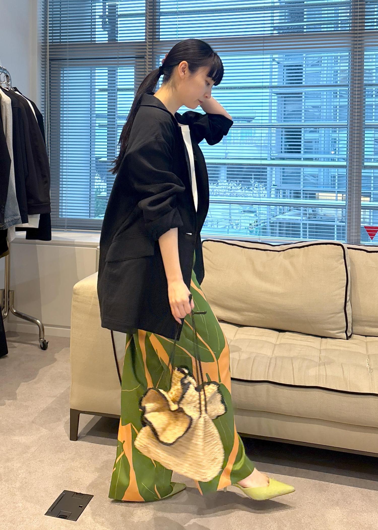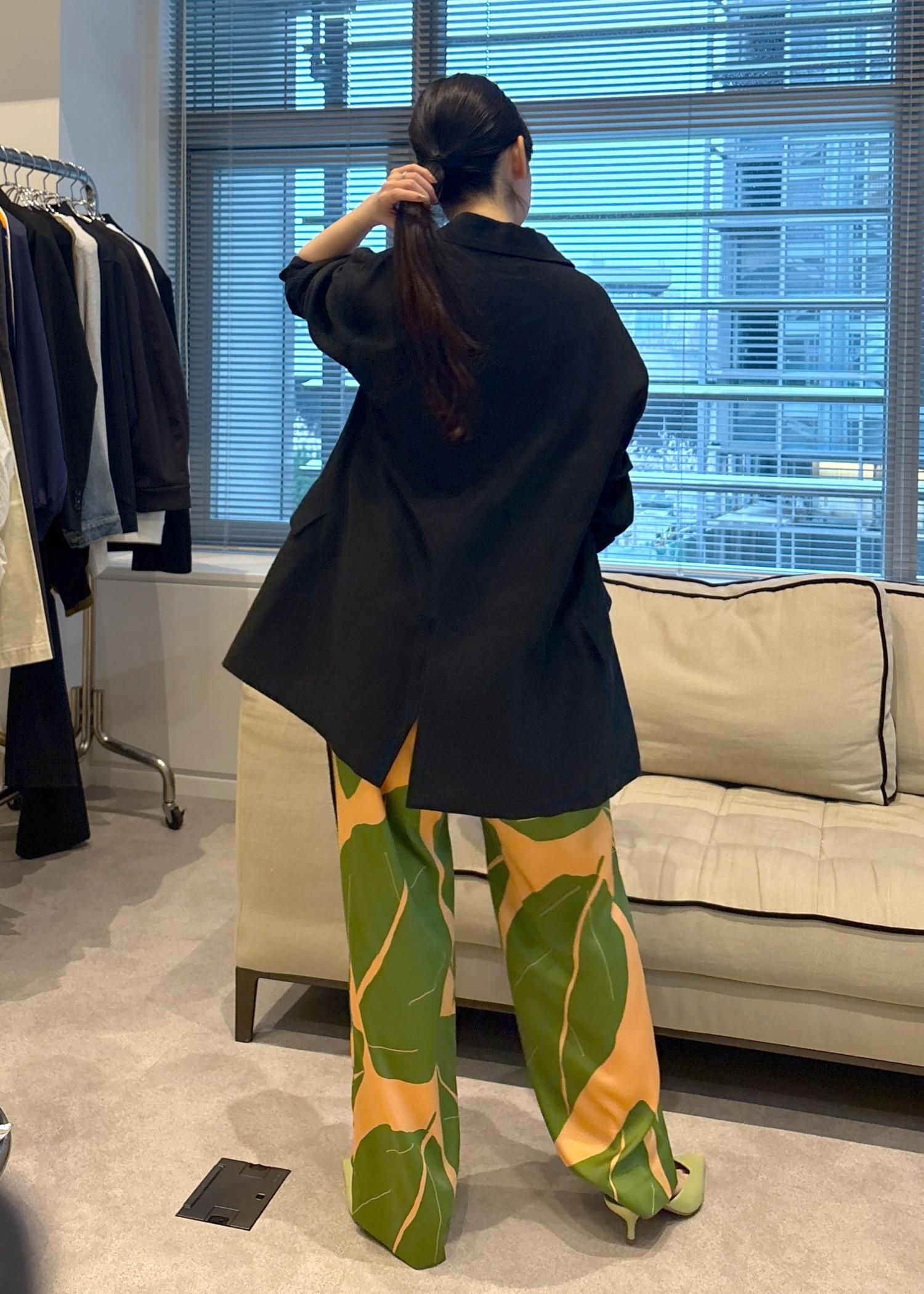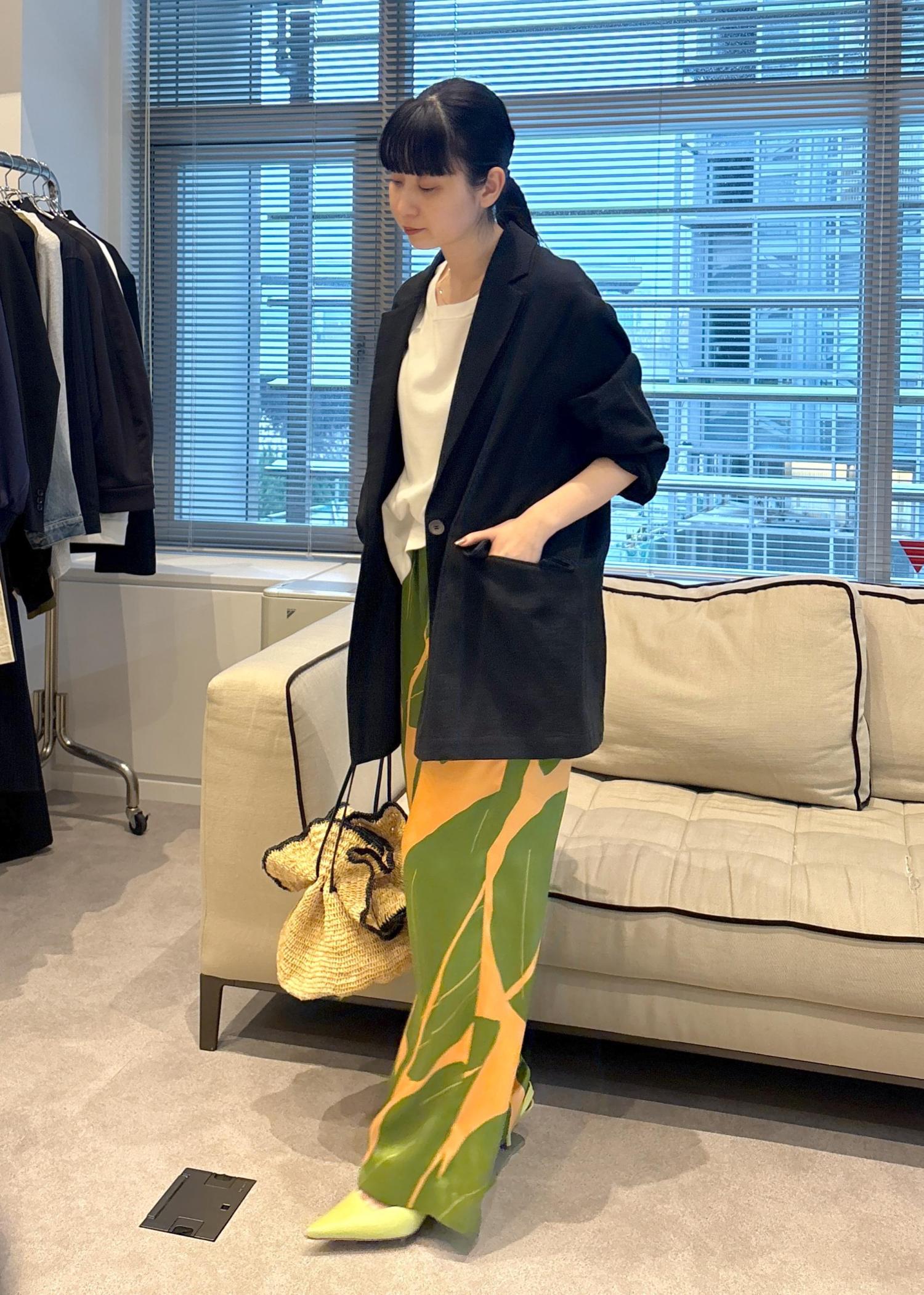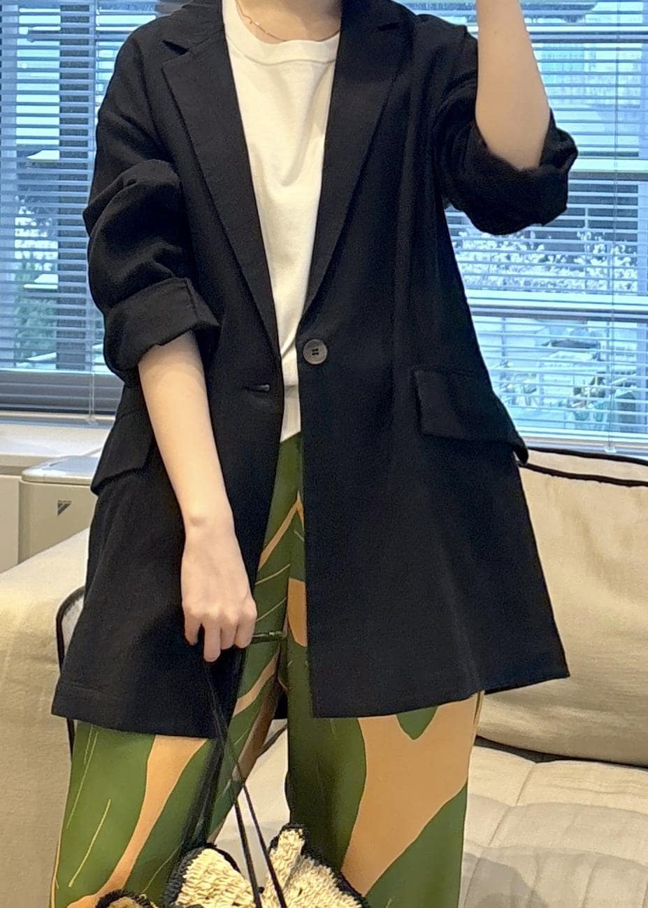 ガーゼ生地のジャケットと合わせて、メンズライクにしてみました。