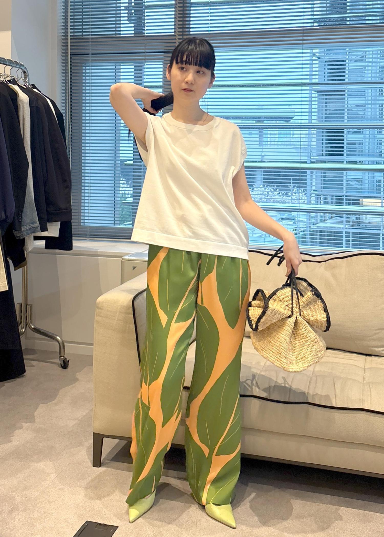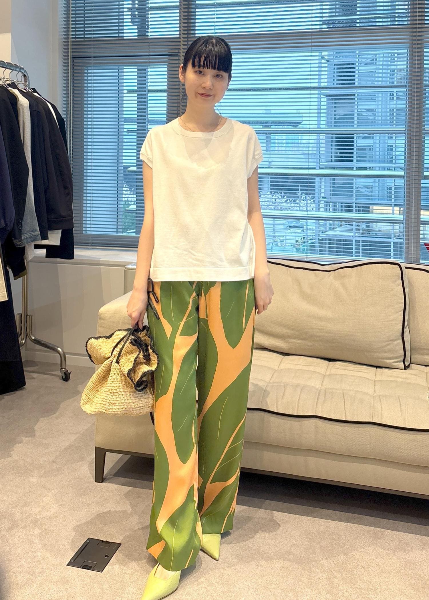 夏らしいポイントアイテムは大人っぽく合わせるのが気分。
