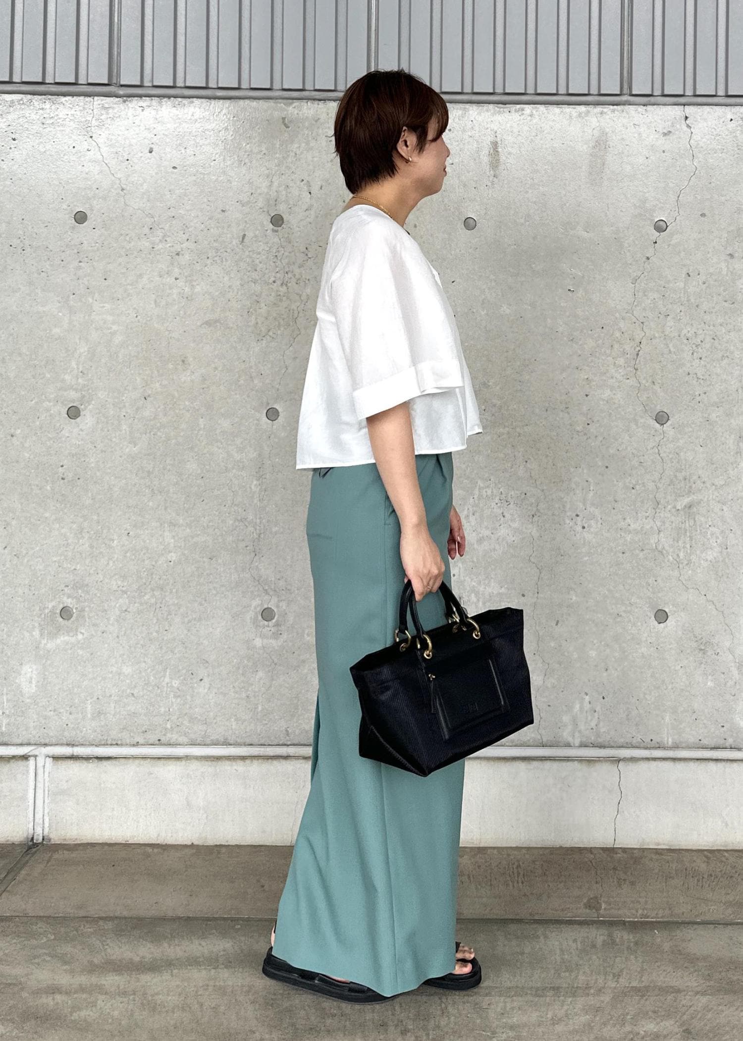 丈感は足首が隠れるほどで、長めのシルエットです。