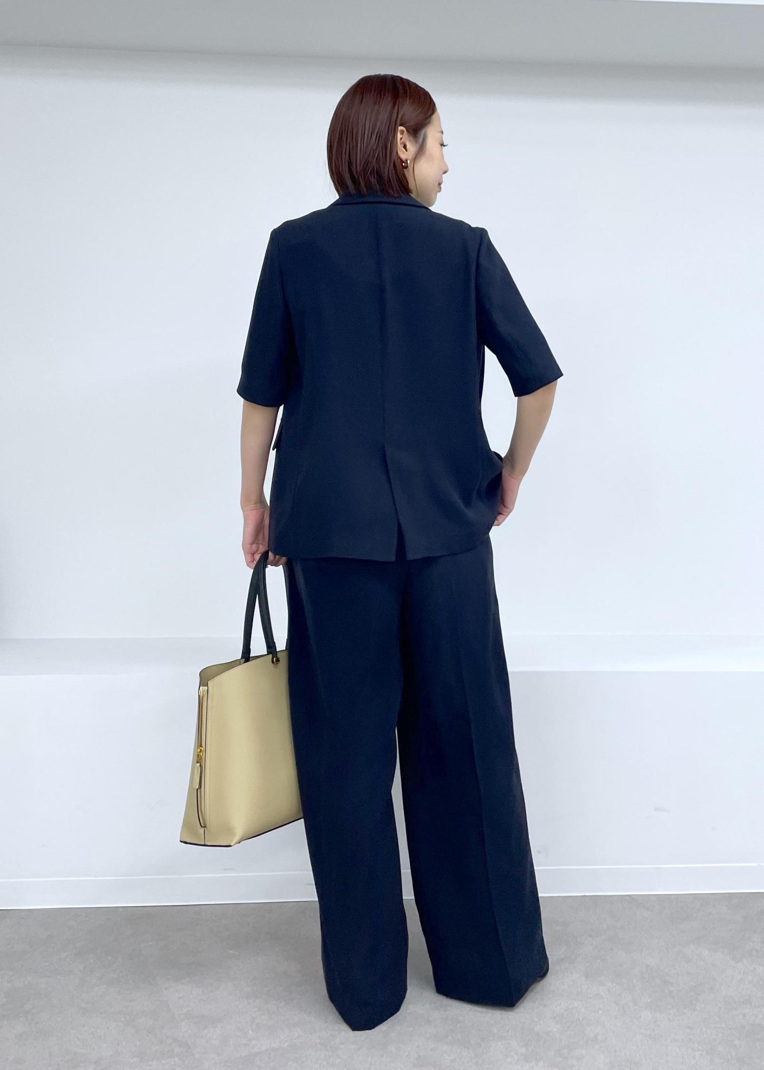 ROPÉ【洗える・カセット服・新色追加】トリアセバックサテン ハーフスリーブジャケット/セットアップ対応ネイビー / 38¥31,900レビュー161cmで38サイズを着用。