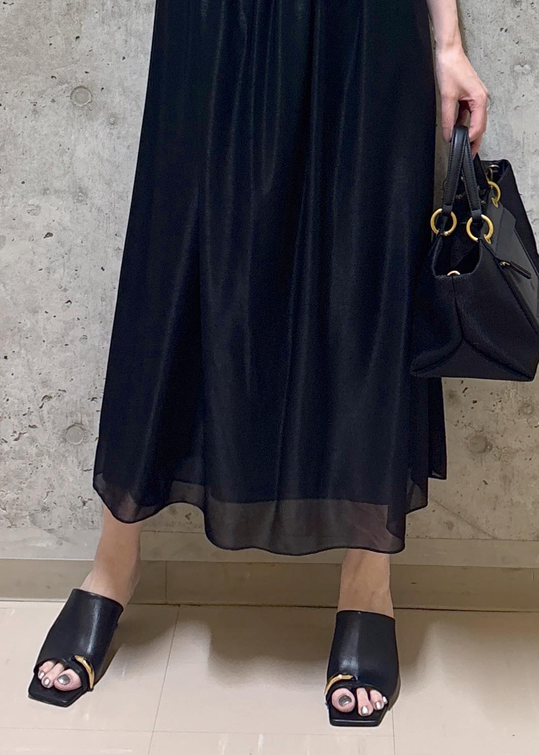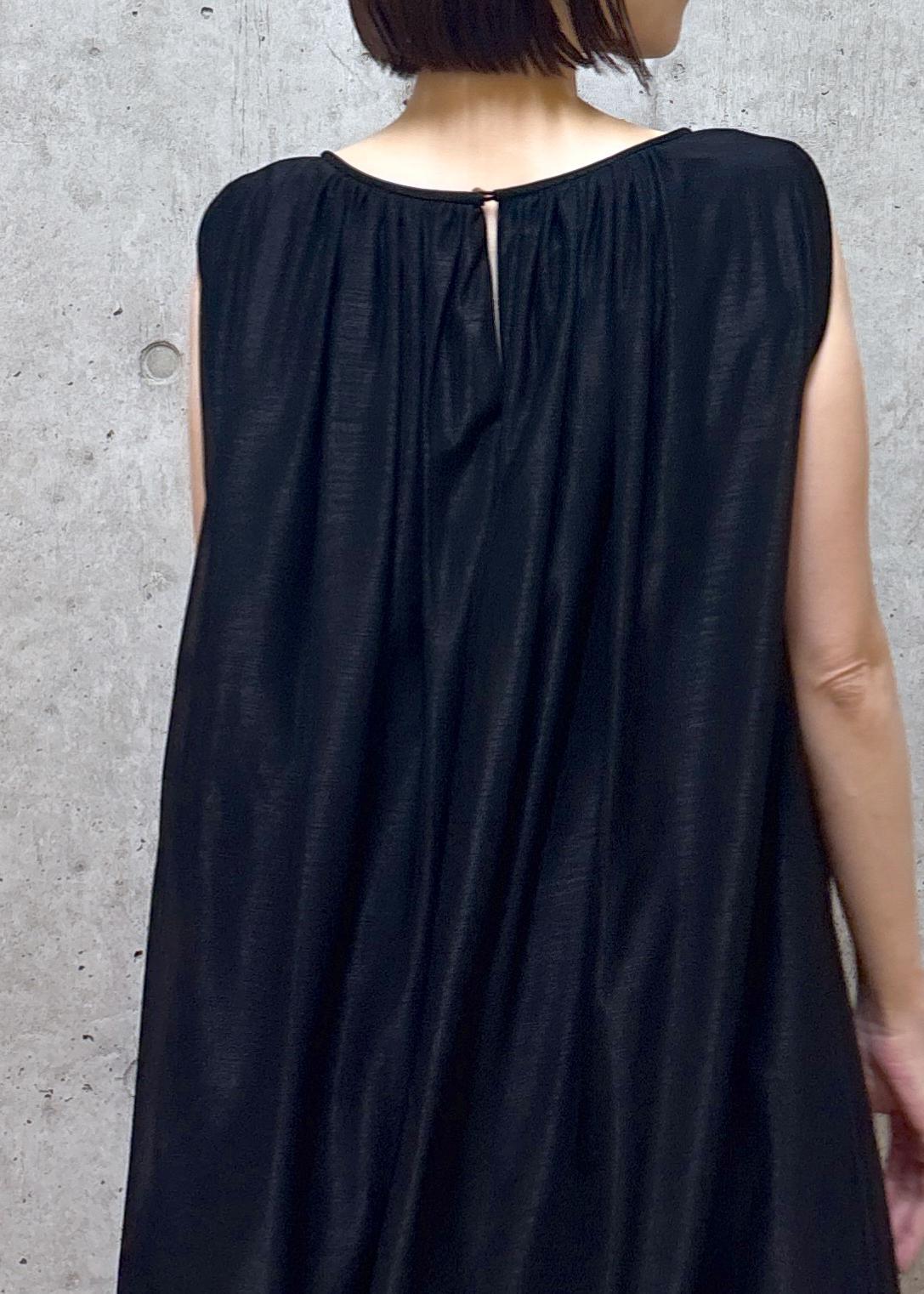襟周りに細かいギャザーがたっぷり入り、歩くたびに揺れ感が上品。