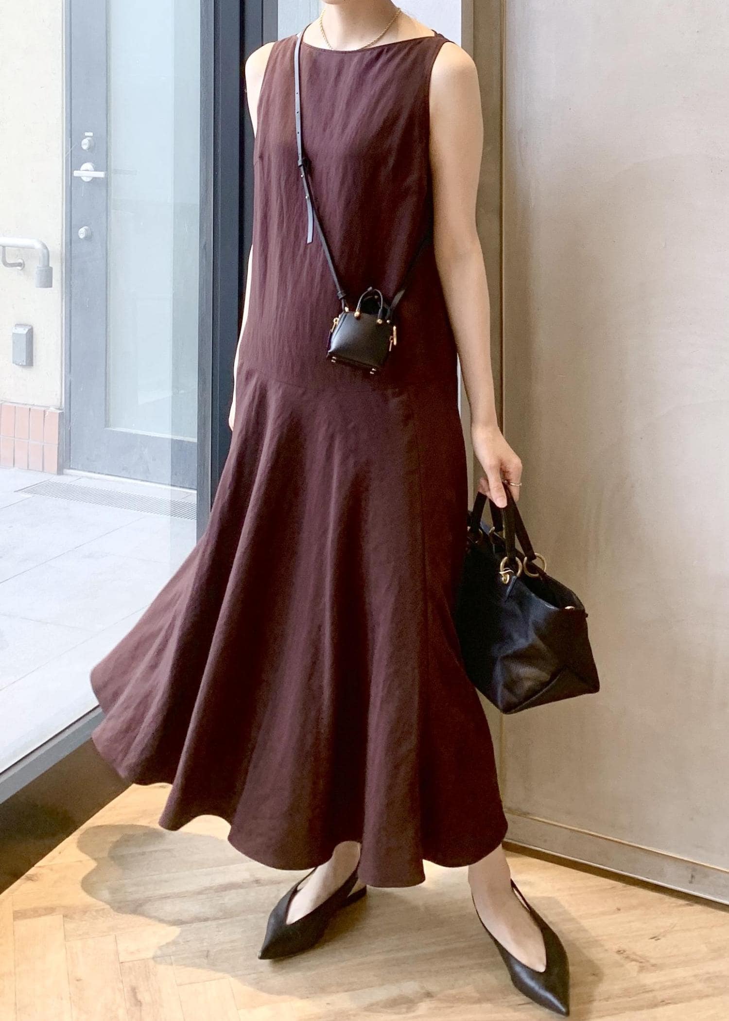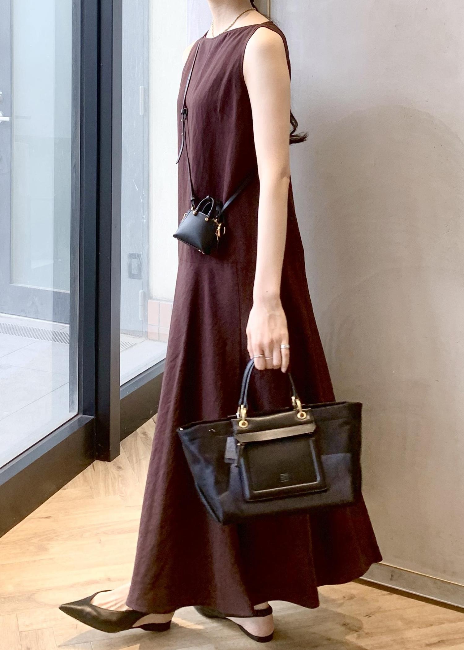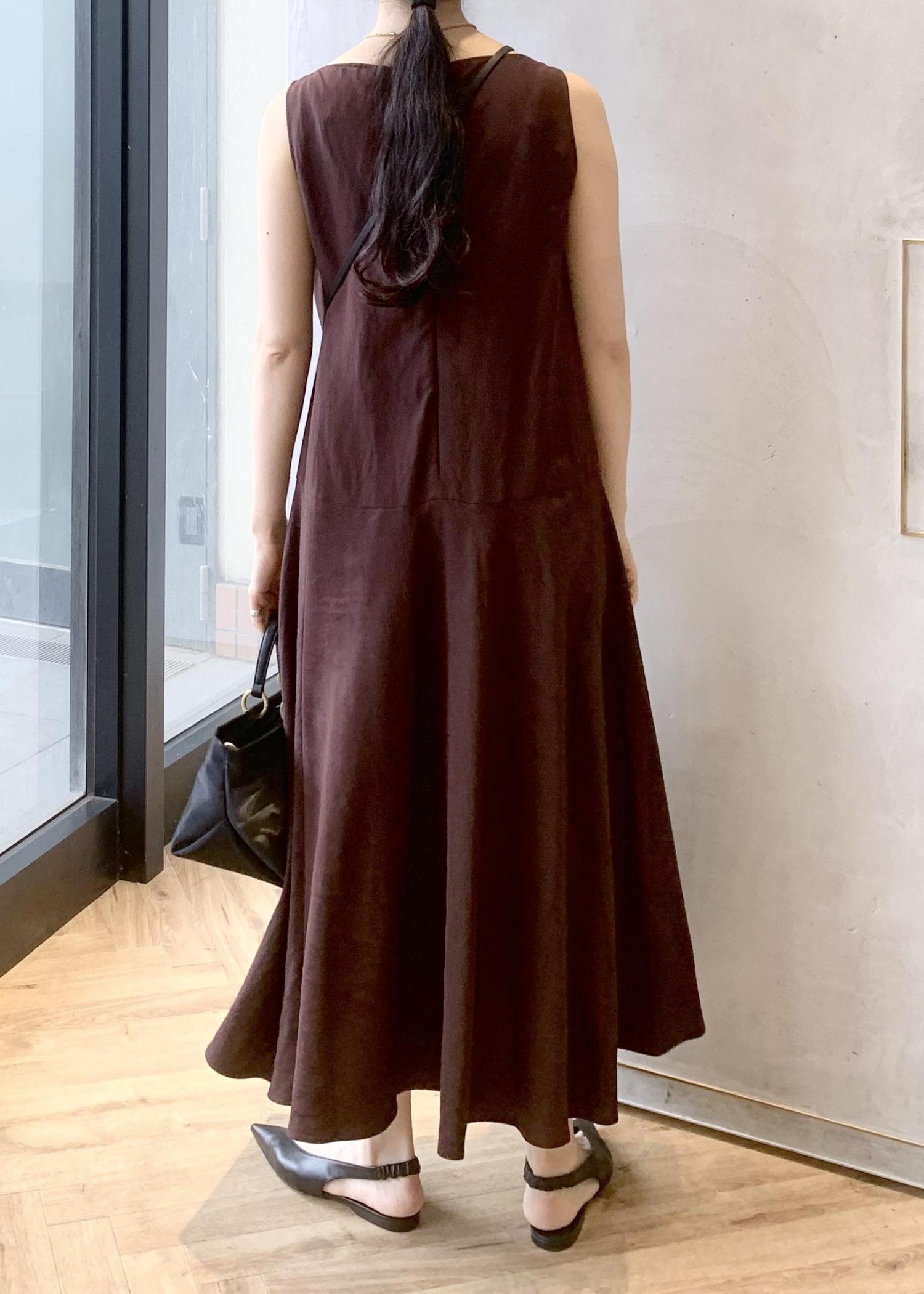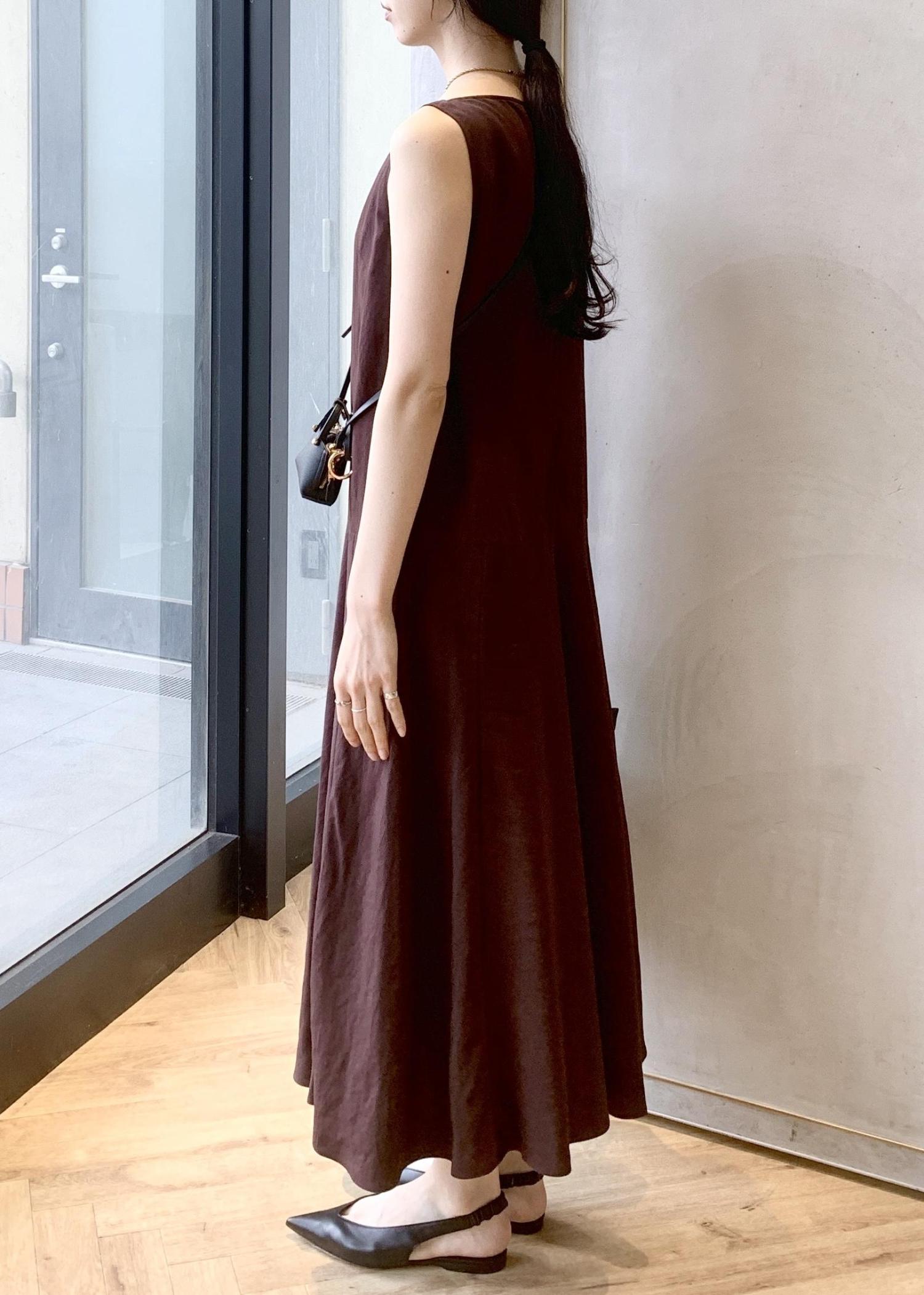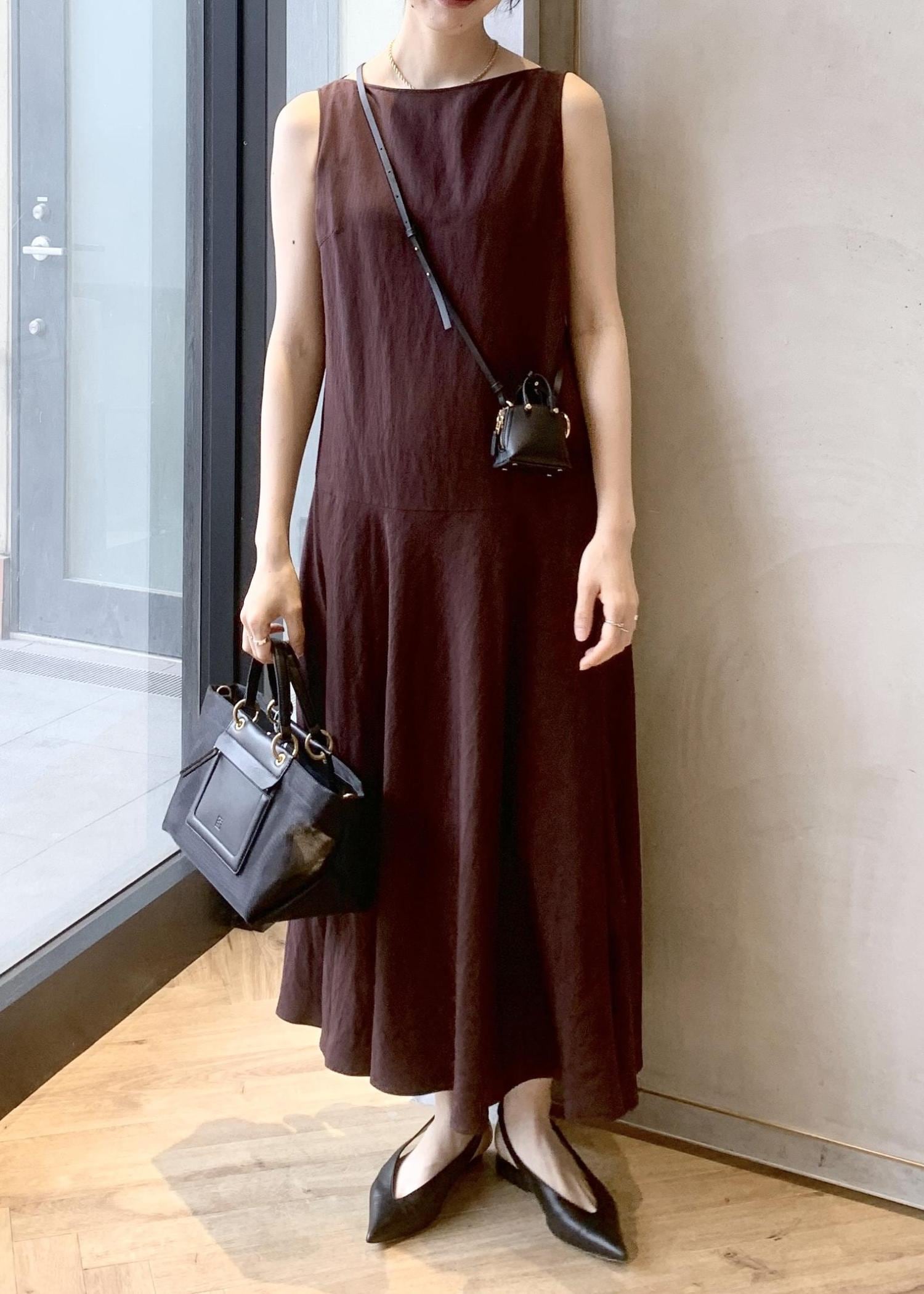 アウトレットROPÉレーヨンリネン スラッシュドネックワンピース【セットジャケット対応】ブラウン / 38¥27,720レビュー167cm、38サイズ着用。