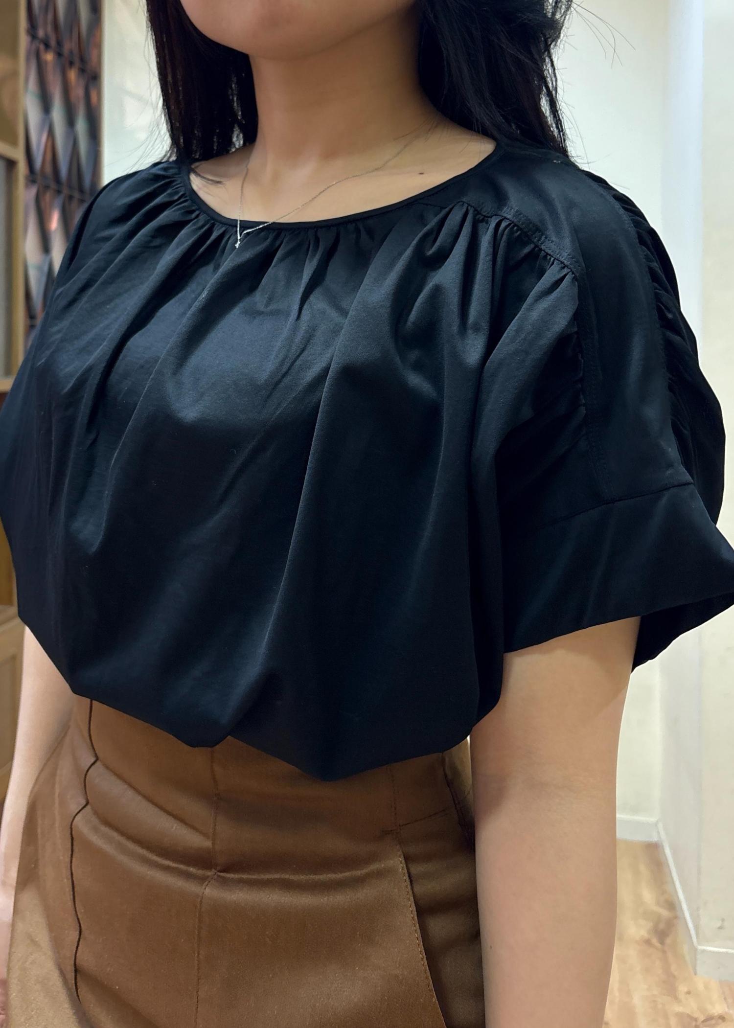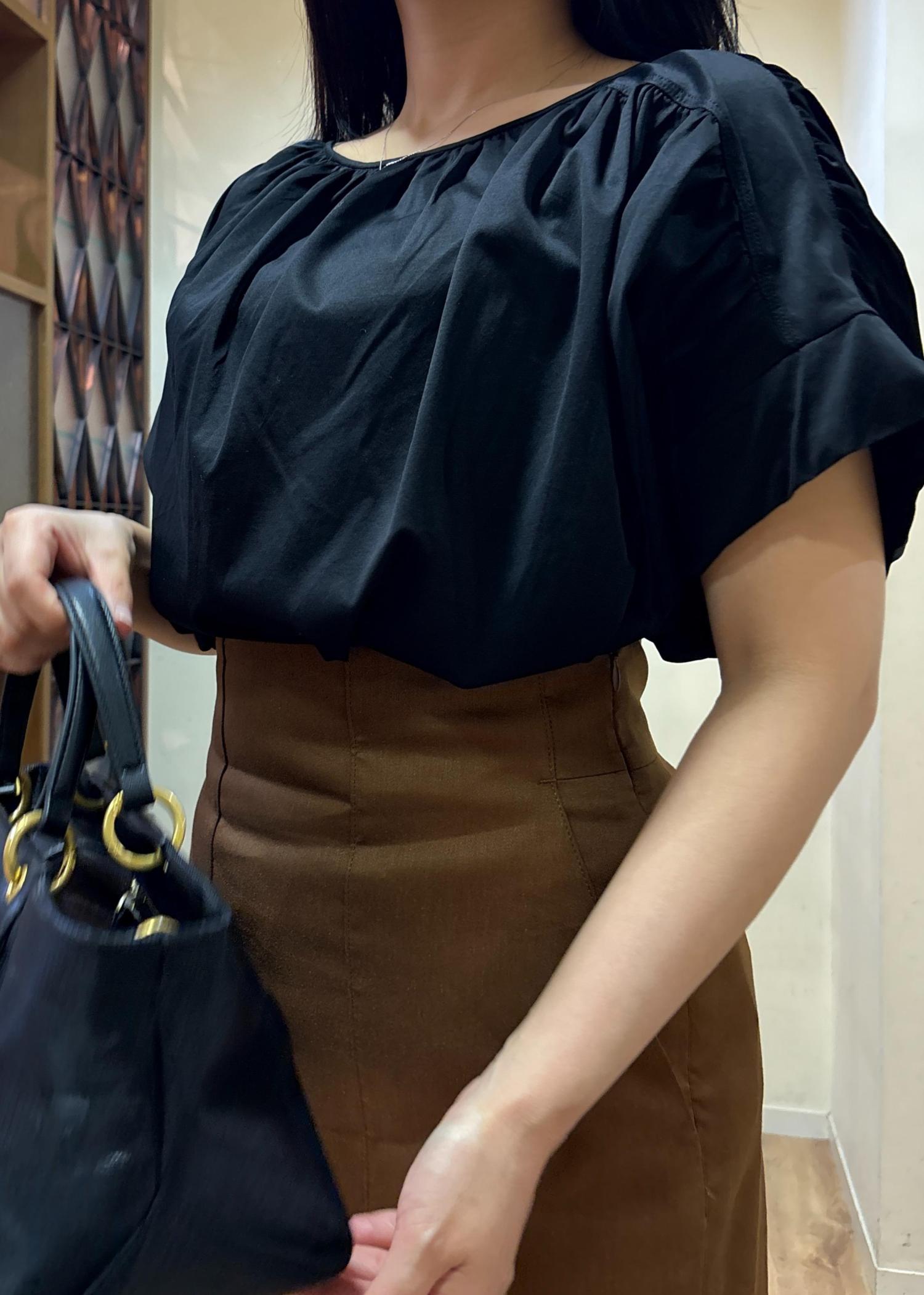 アウトレットROPÉ【洗える】クリア天竺ギャザー半袖プルオーバー/お仕事服ブラック / F¥13,200レビュー身長152cm Fサイズ