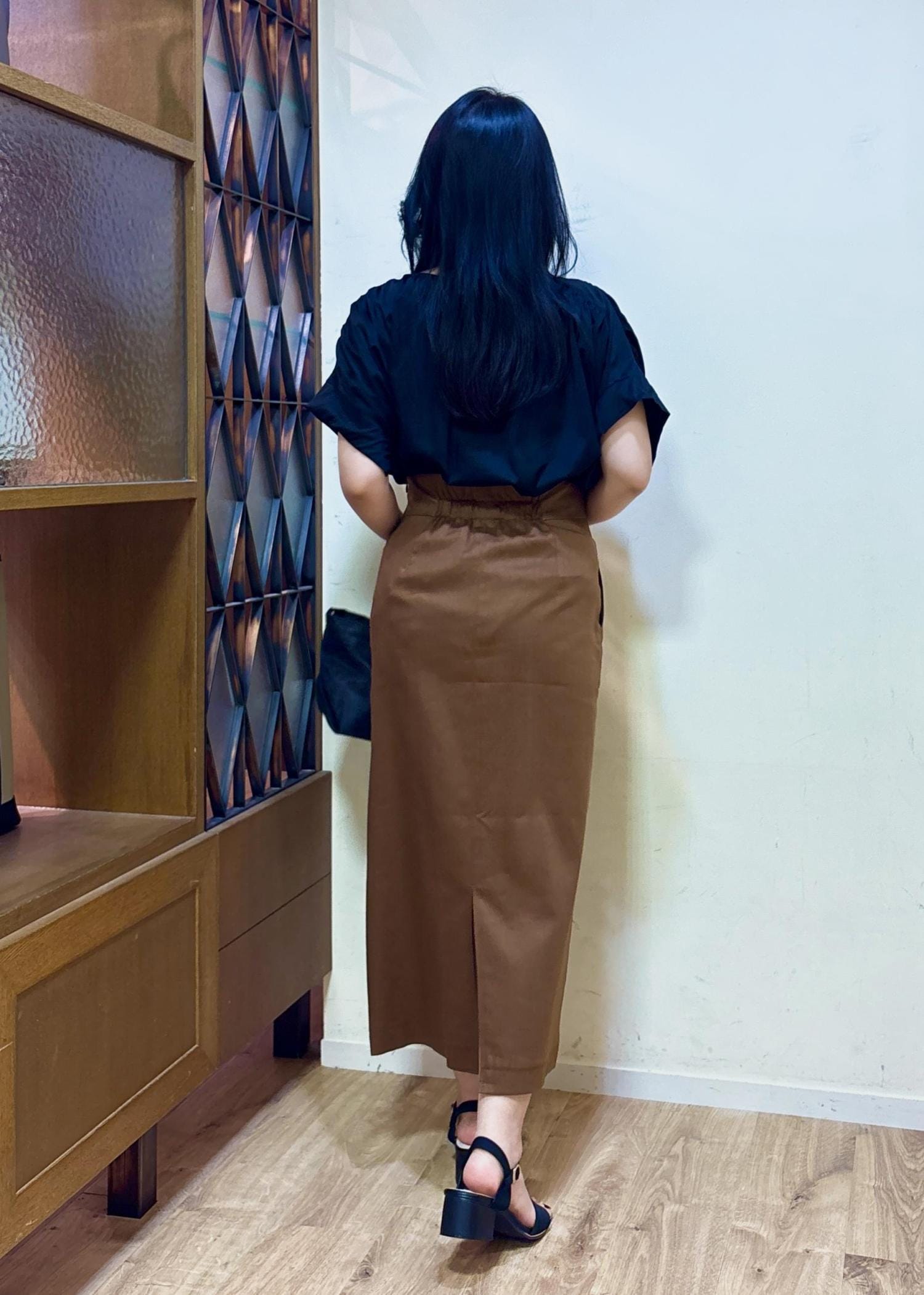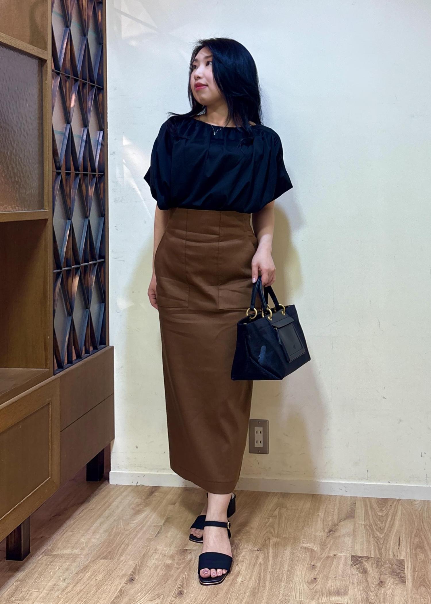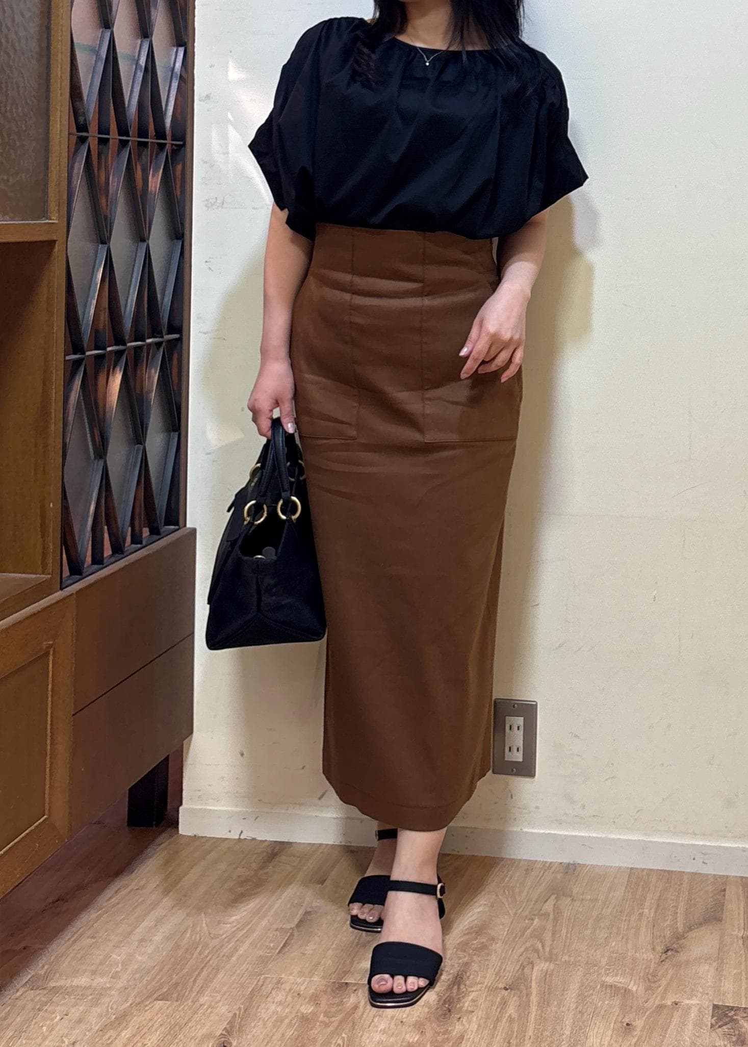 アウトレットROPÉ【洗える】サテンリネン ポケット付きタイトスカート【34サイズ/J'aDoRe・店舗限定】/25SSブラウン / 36¥9,900レビュー身長152cm 36サイズ着用