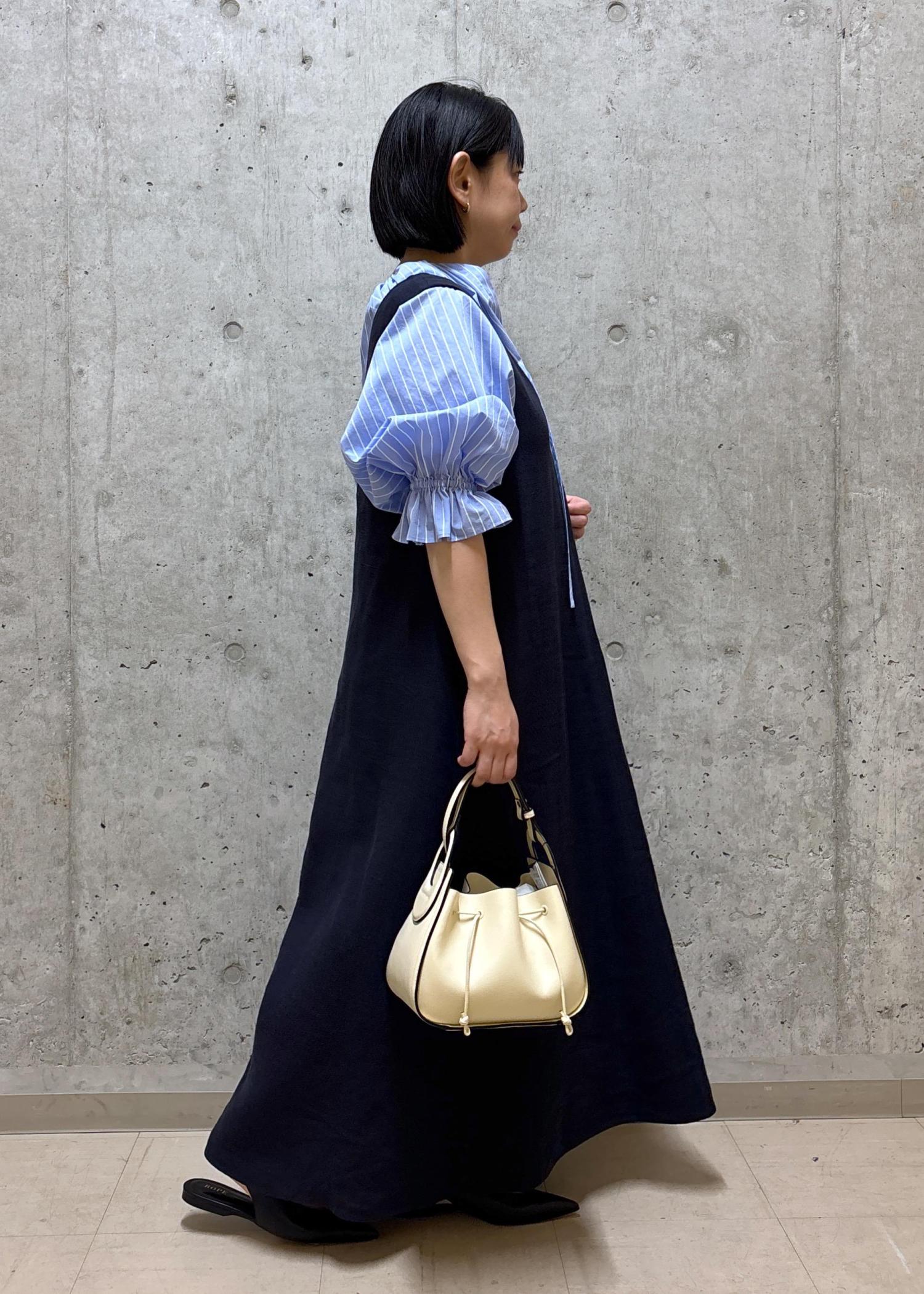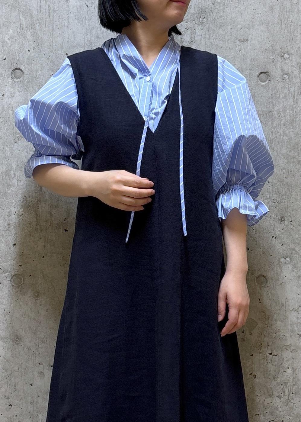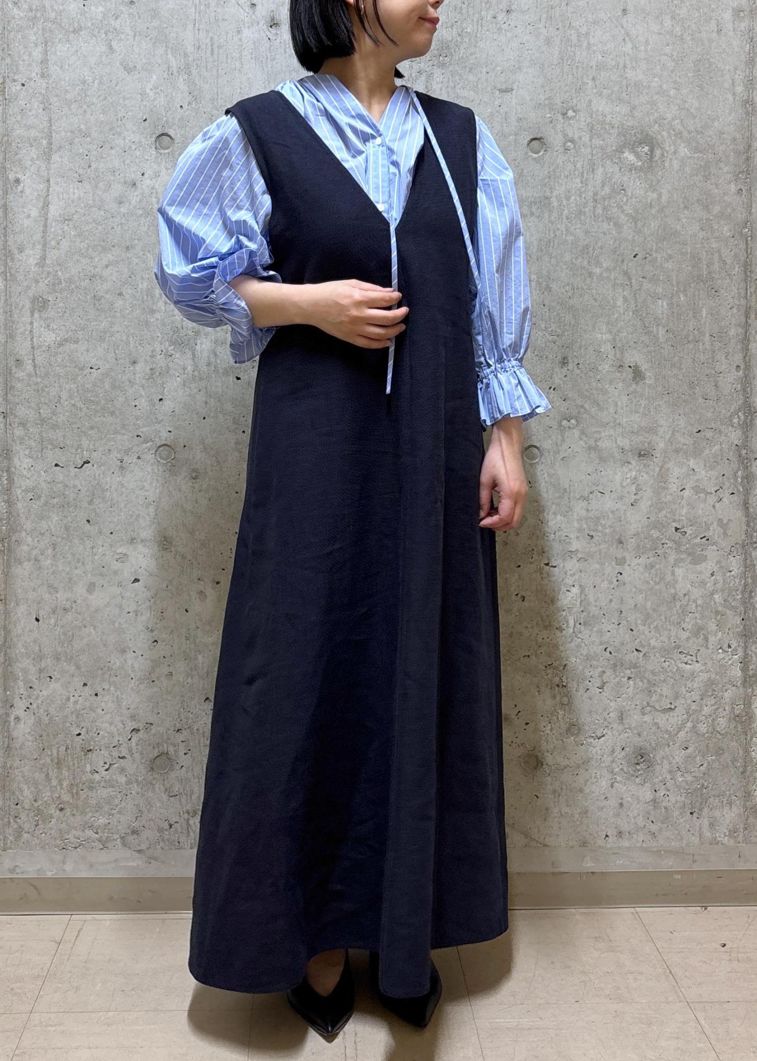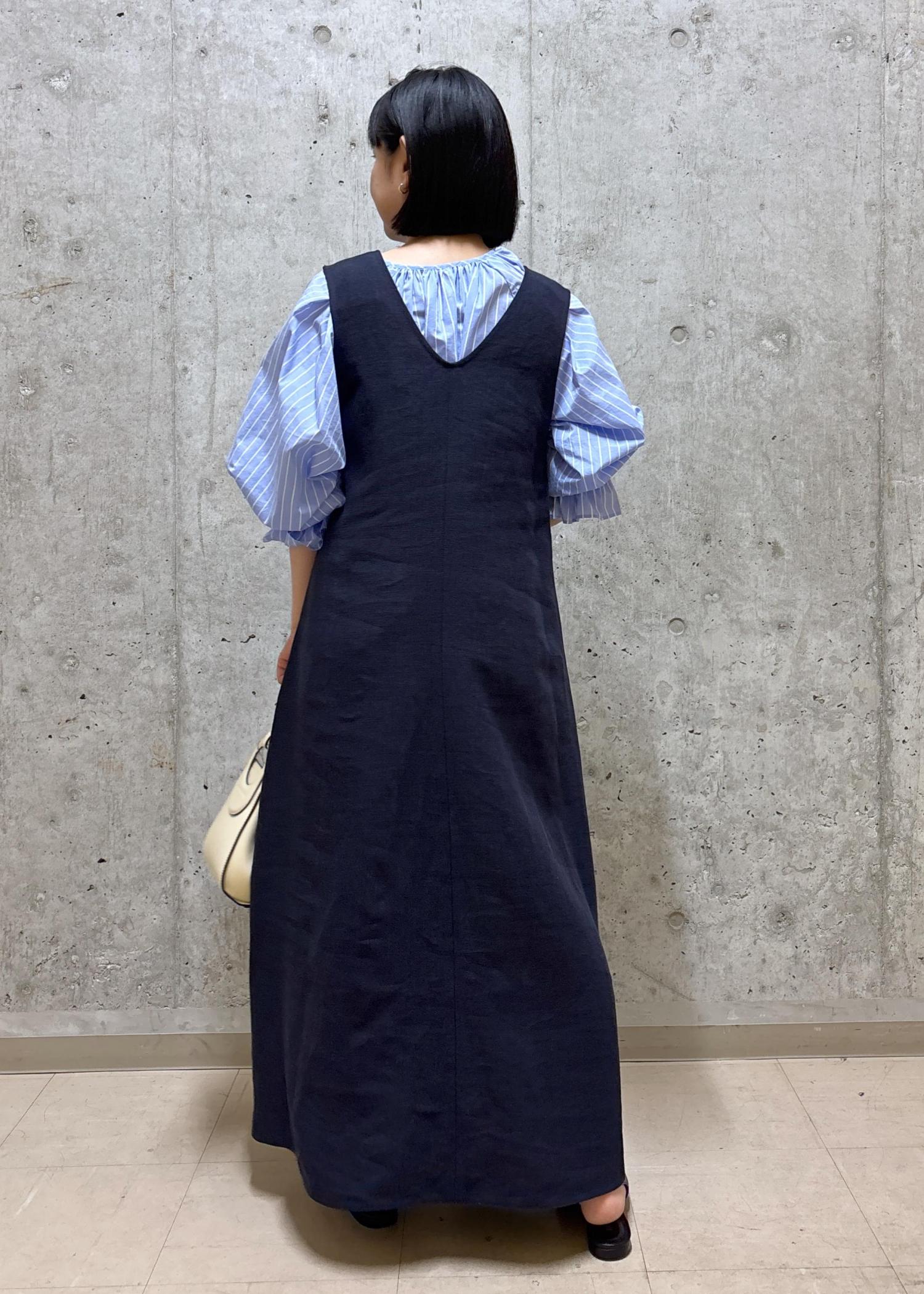 アウトレットROPÉ尾州リネン ディープVネックフレアワンピースネイビー / 36¥20,900レビュー152cmで36サイズ着用