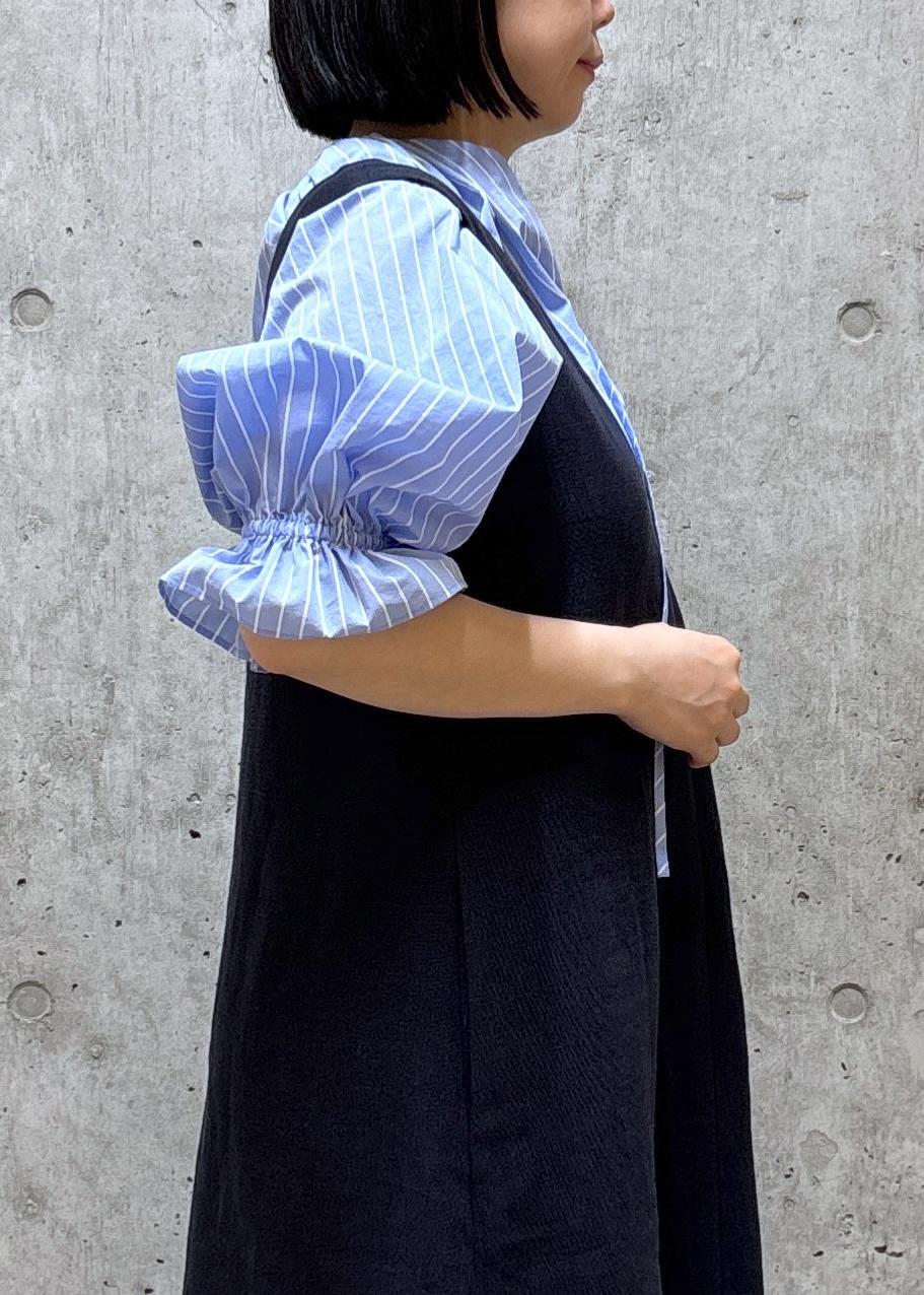 アウトレットROPÉ【洗える】タイプライターハーフスリーブブラウス/お仕事・通勤対応ブルー / F¥11,550レビュー152cmでFサイズ着用