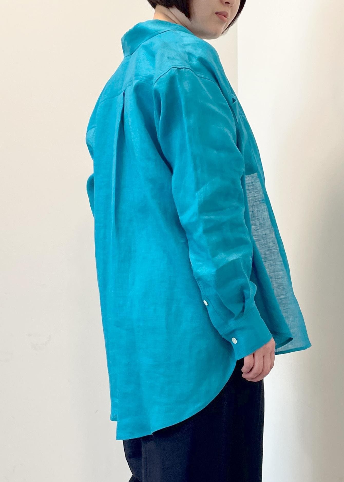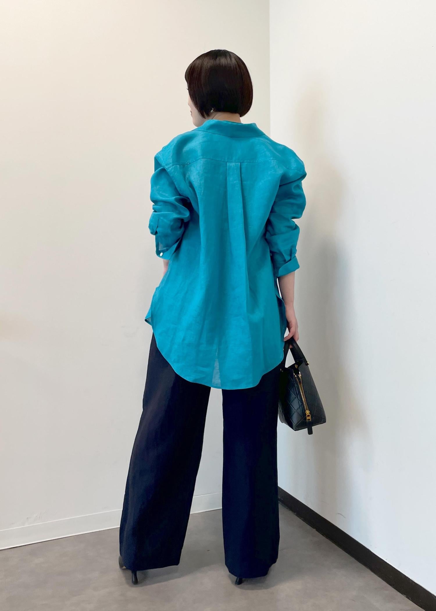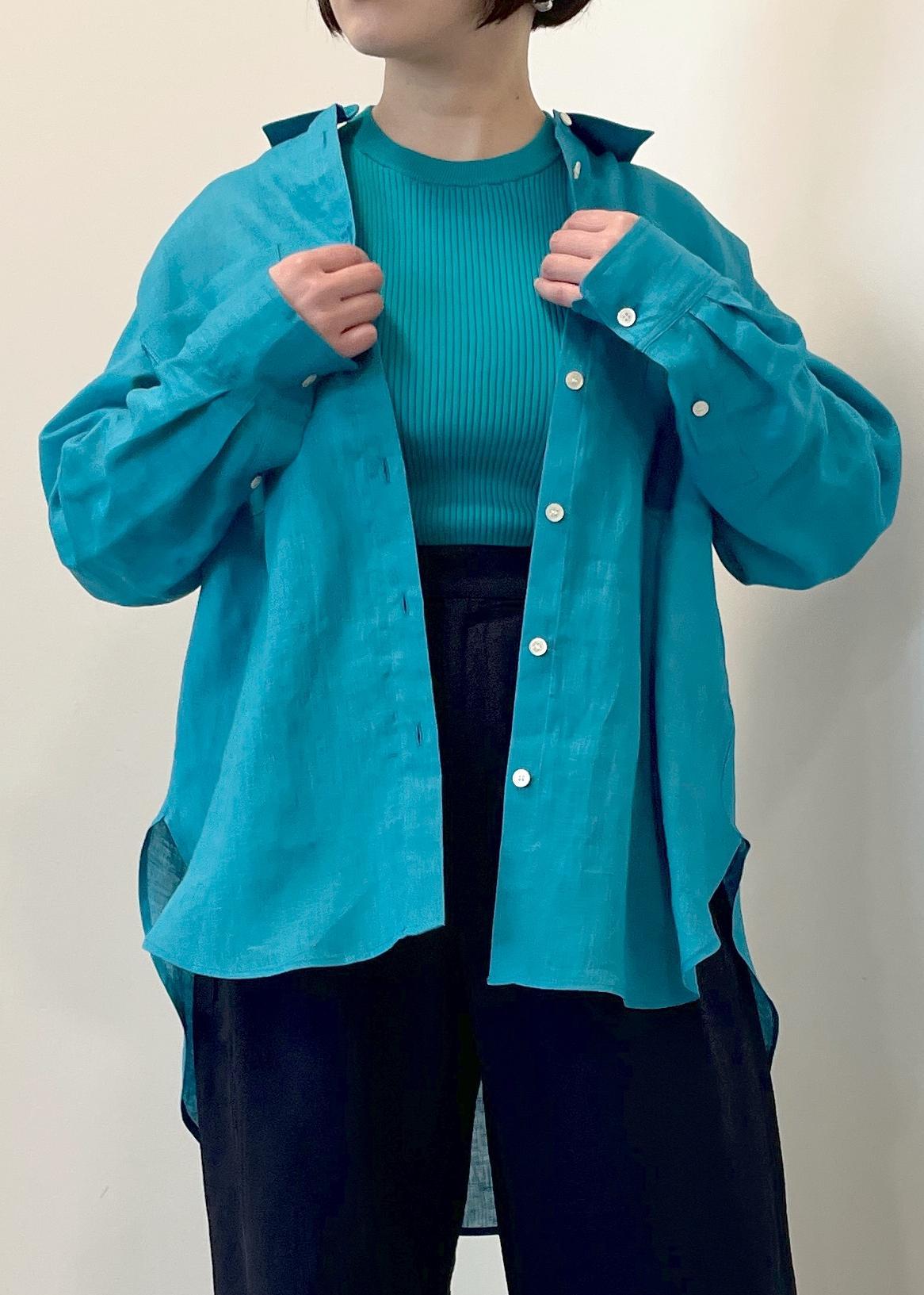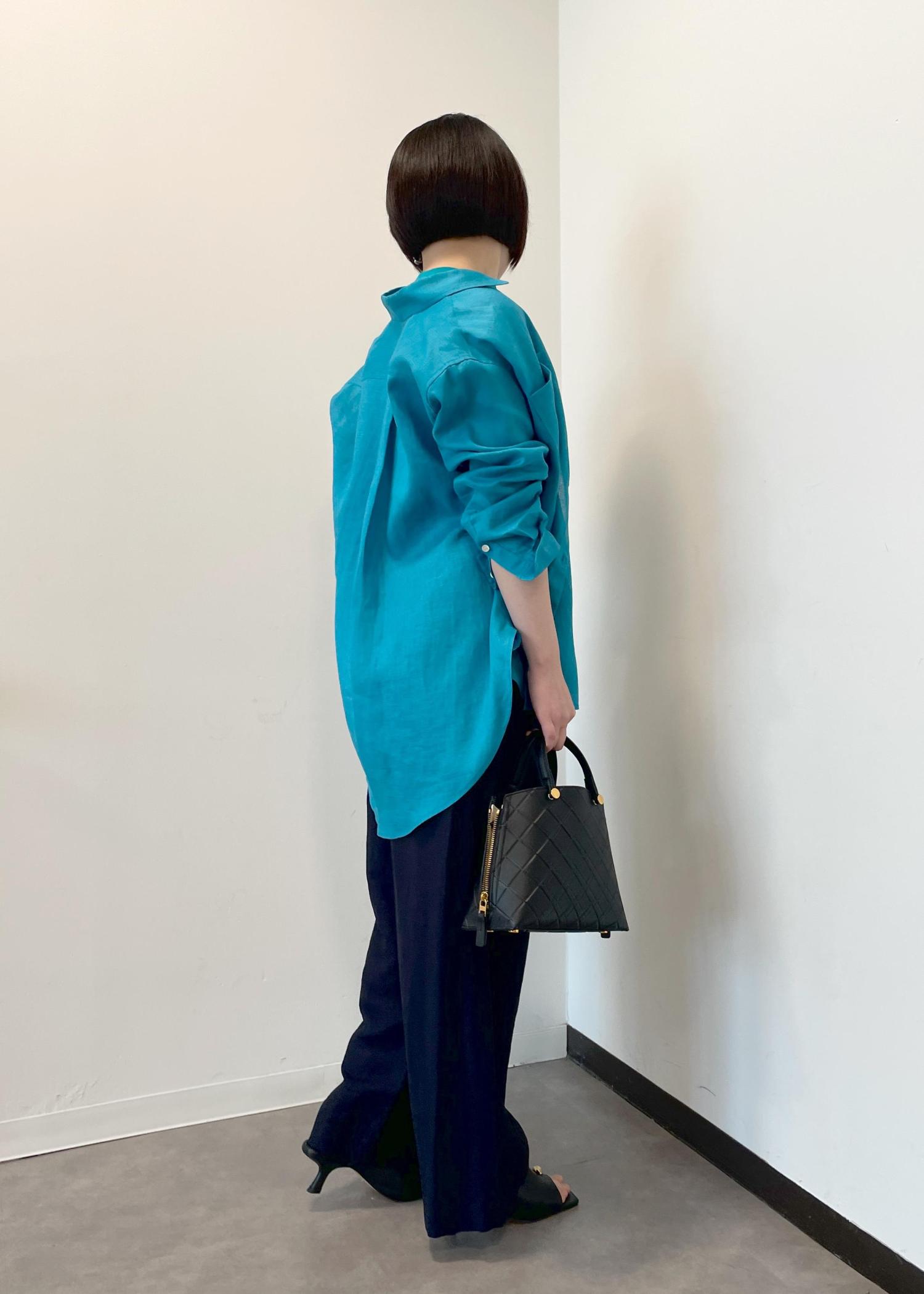 ROPÉ【洗える】ヨーロピアンリネンベーシックシャツ/一部セットアップ対応ターコイズ / F¥25,300レビュー155cmでフリーサイズを着用しています。