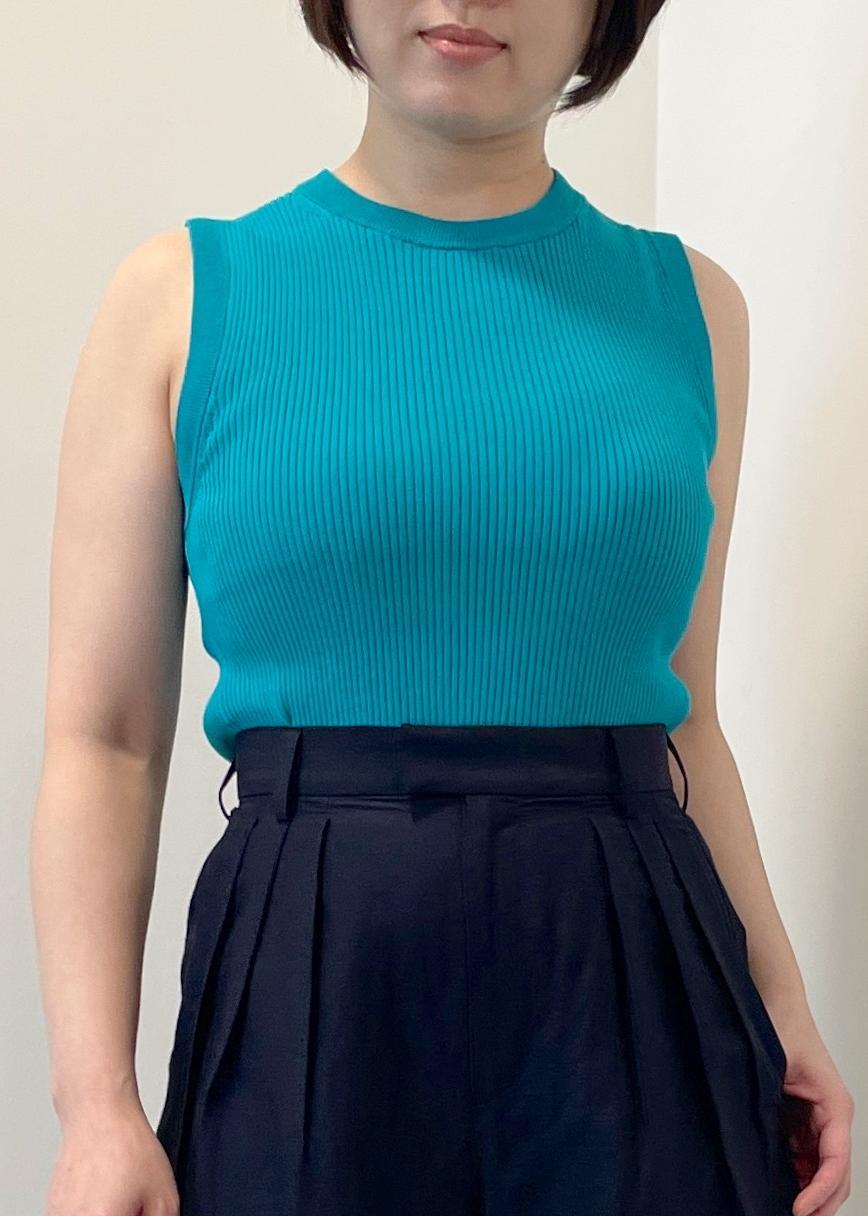 アウトレットROPÉ【洗える】オーガニックコットンリブスリーブレスニットターコイズ / F¥11,550レビュー155cmでフリーサイズを着用しています。