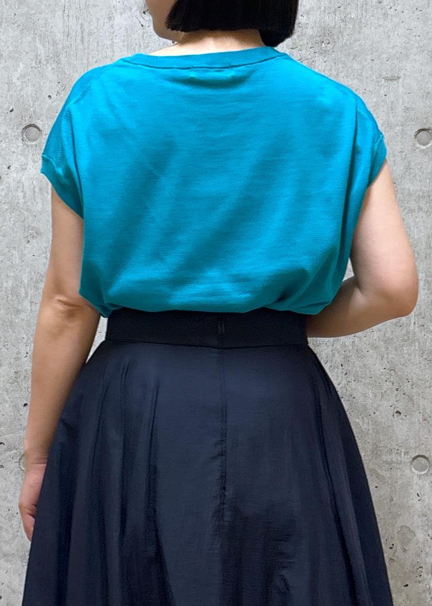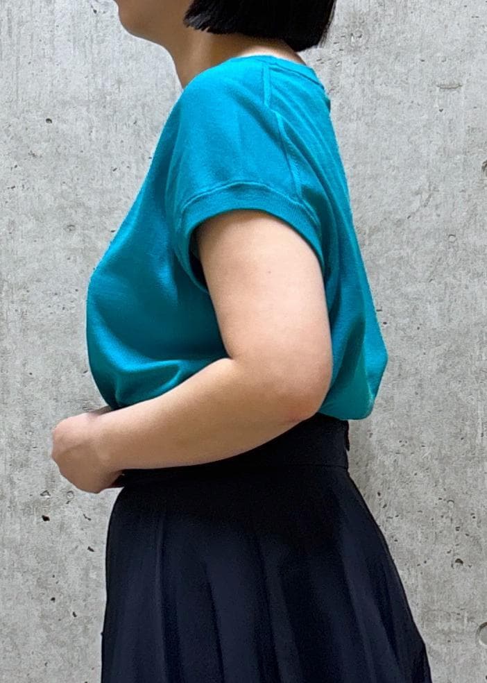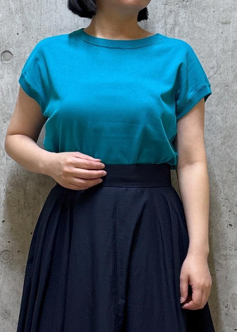 アウトレットROPÉ【洗える】オーガニックコットンハイゲージフレンチスリーブニットターコイズ / F¥8,800レビュー152cmでFサイズ着用