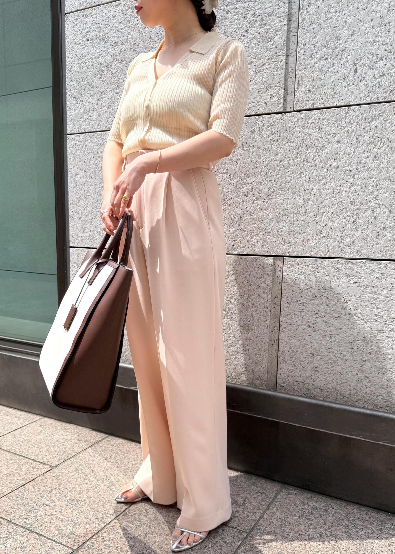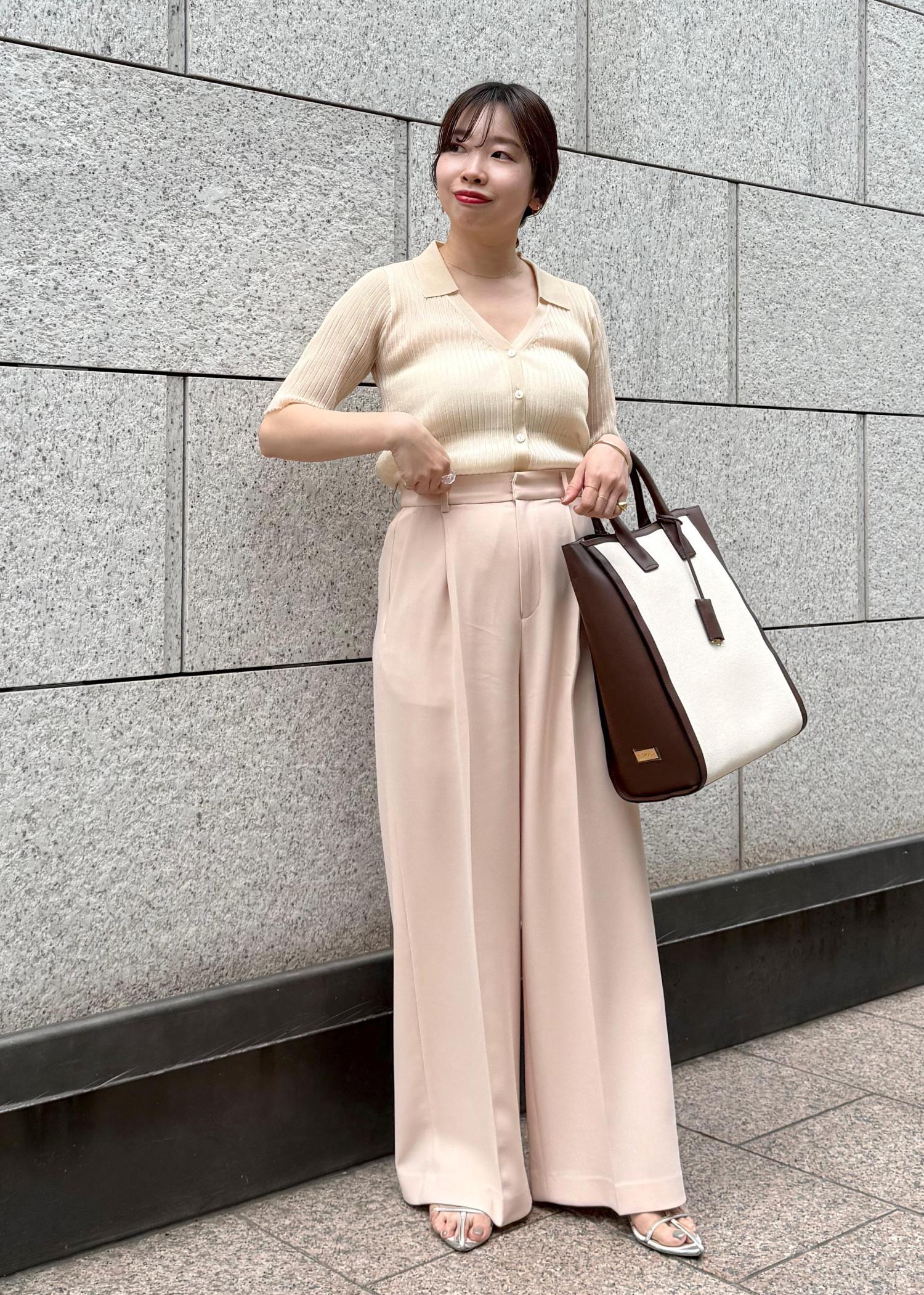 素材にハリがあり肌に密着しないので、夏場も涼しく着られそうです!