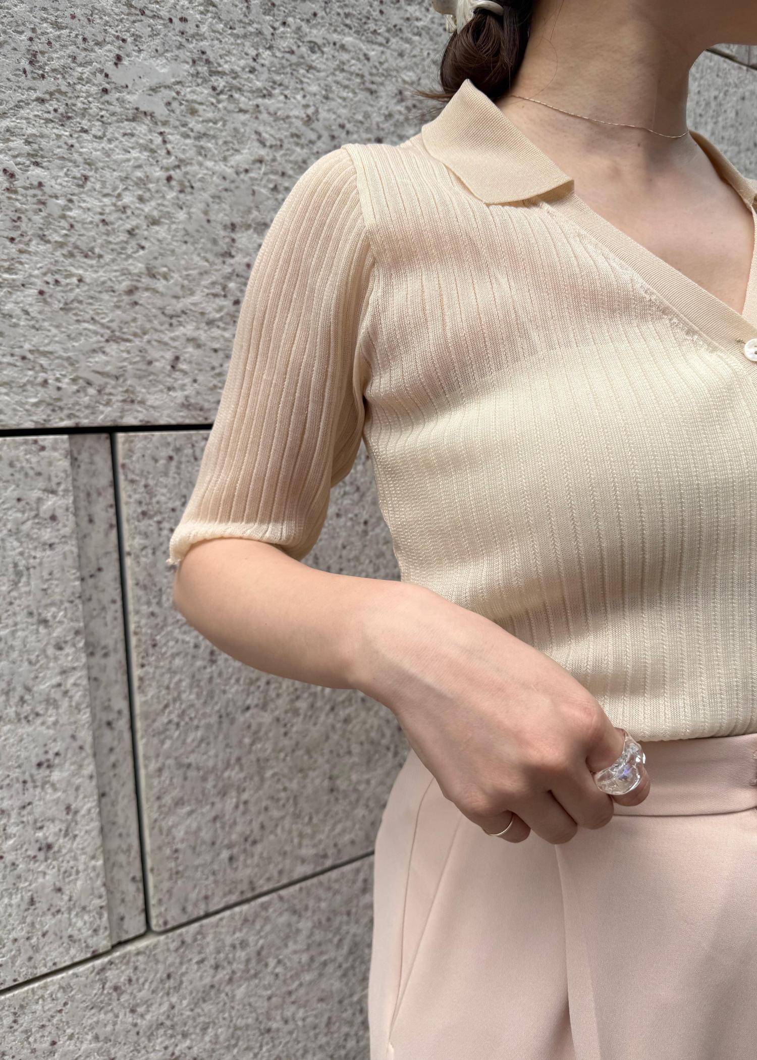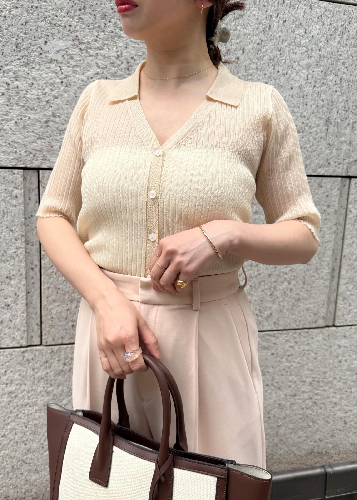 アウトレットROPÉ【洗える】【WEB・一部店舗限定】シアーリブVネックポロニットベージュ / F¥6,160レビュージャストサイズでした。