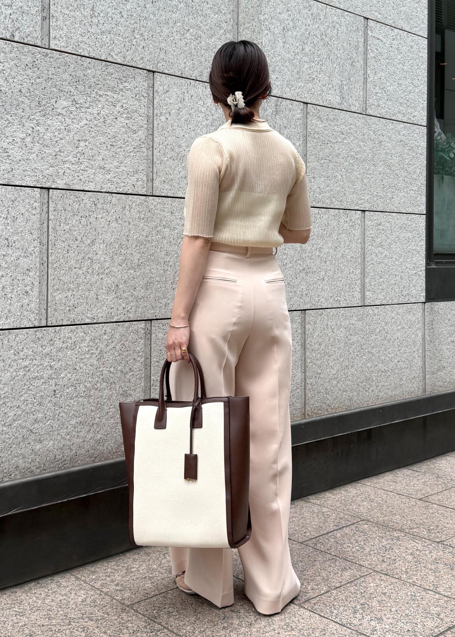 ウエスト周りはフィット感がありますが、ヒップや太もものラインは拾わずにすとんと落ちるストレートシルエットなので脚が綺麗に見え、ウエスト位置も高めなので脚長効果もあります◎ -