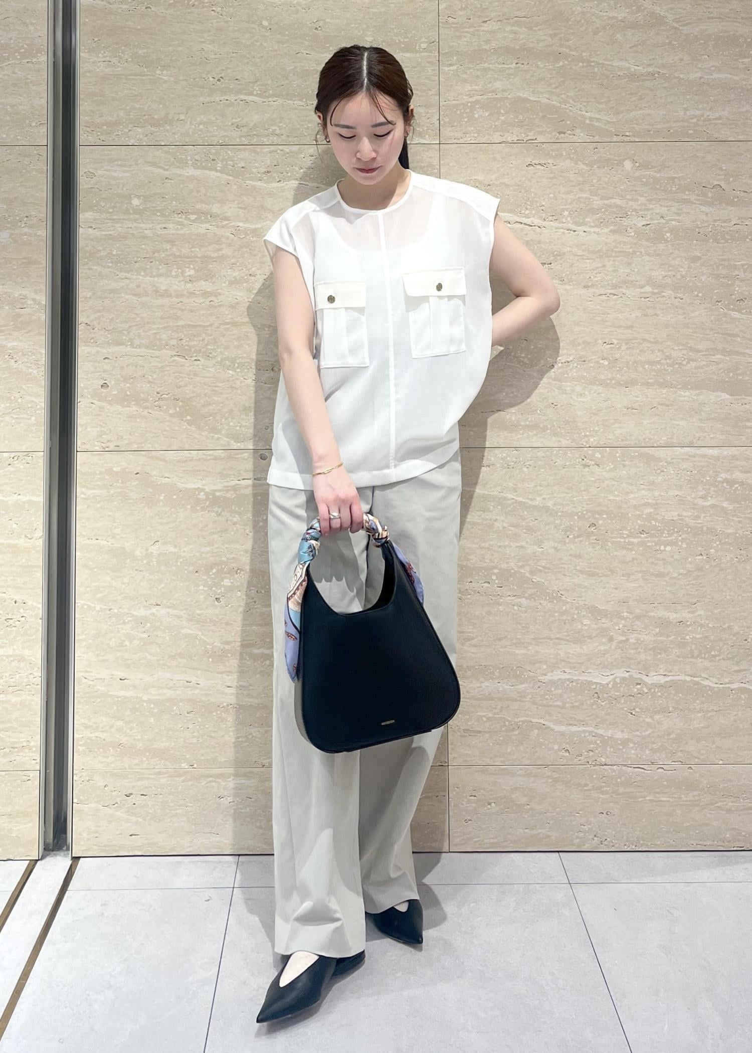 アウトレットROPÉ【洗える】サファリ シアーブラウスオフホワイト / F¥12,650レビューノースリーブですが、肩が隠れるデザインなので二の腕をスッキリみせてくれます。