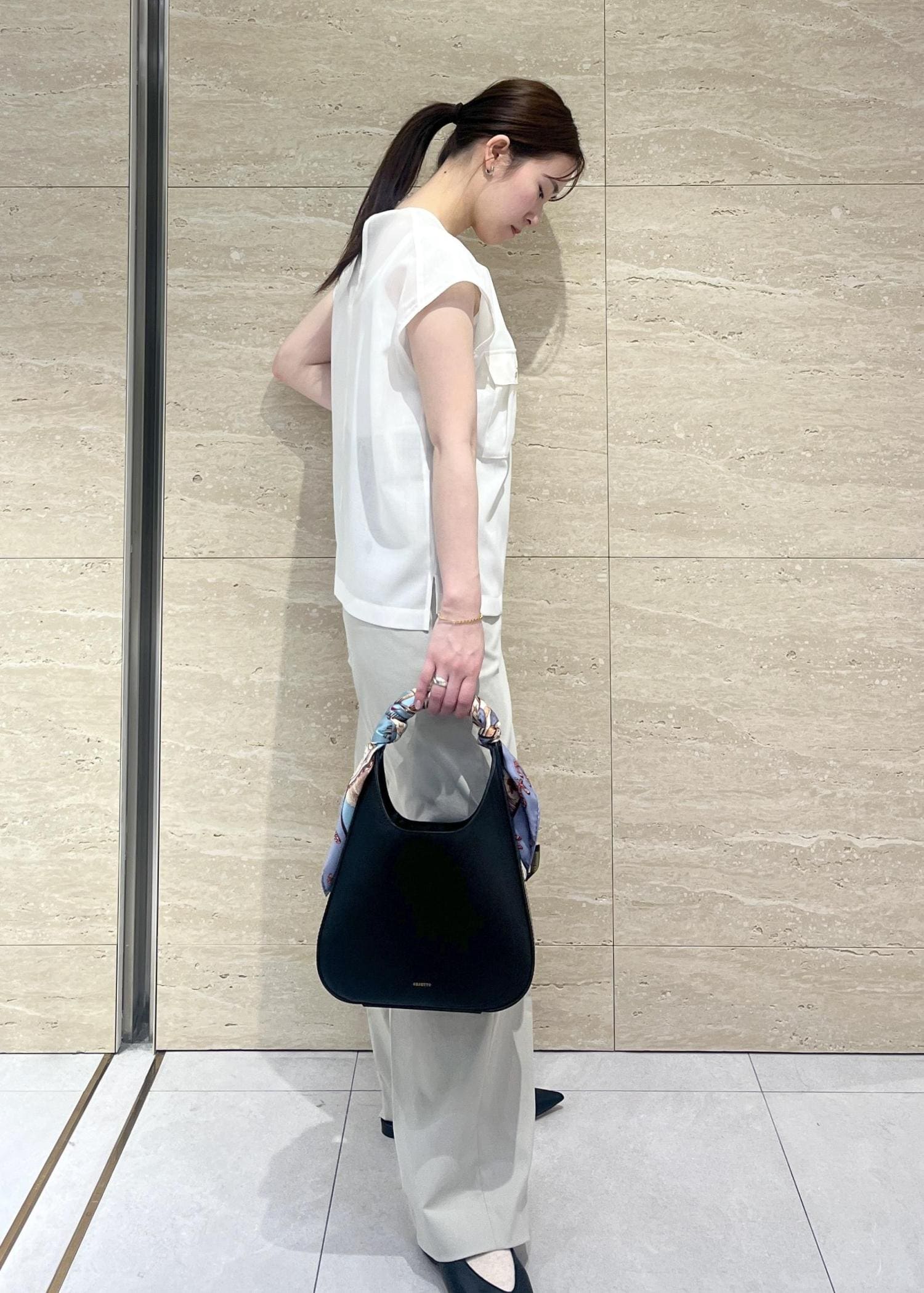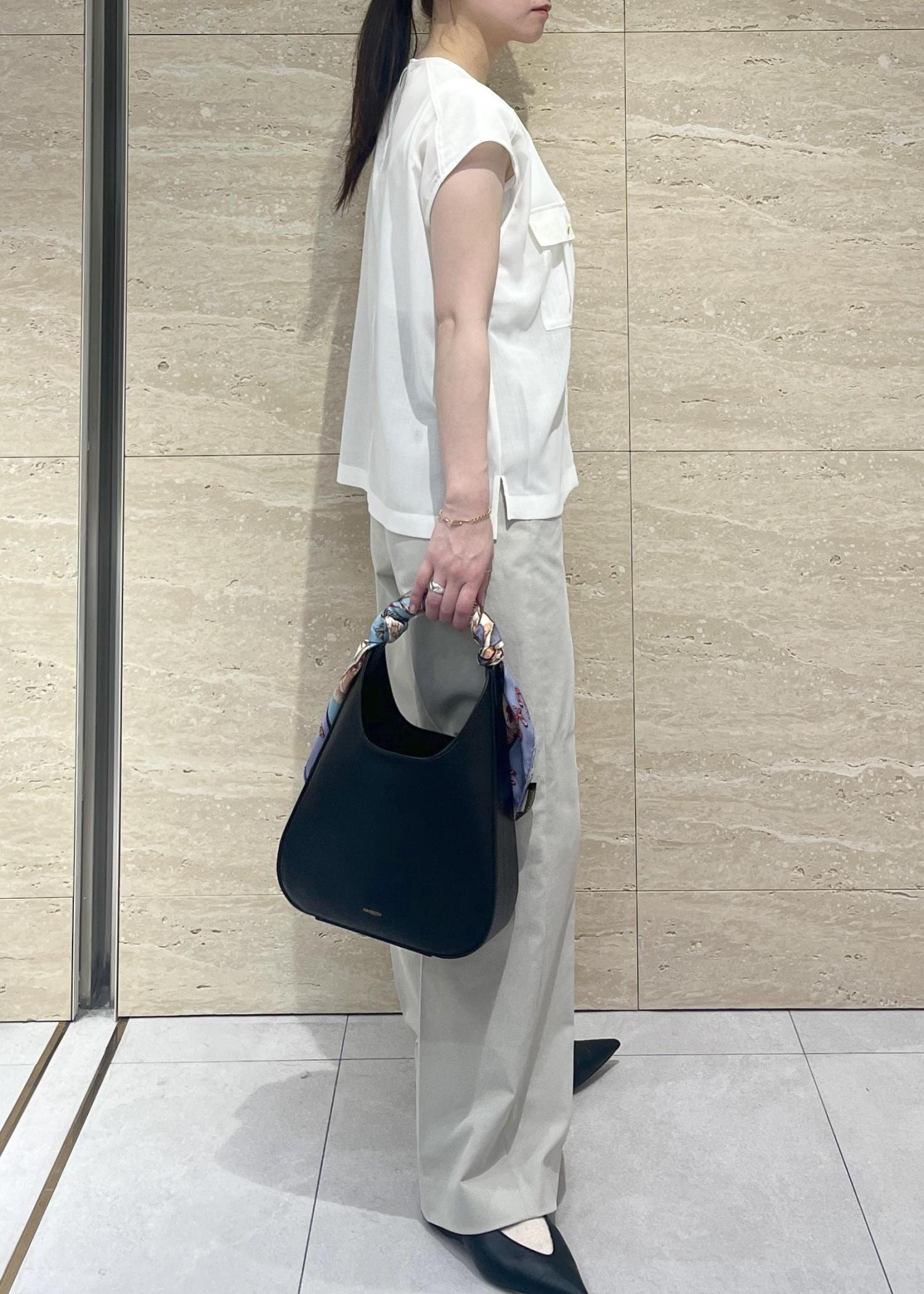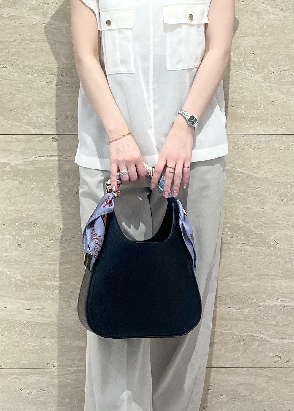 アウトレットROPÉ SELECT【ORSETTO(オルセット)】MERCATO|バンブーバッグブラック / F¥24,750レビュー三角形の構築的なフォルムが洗練された印象で、手持ちでもショルダーでも上品に決まります。
