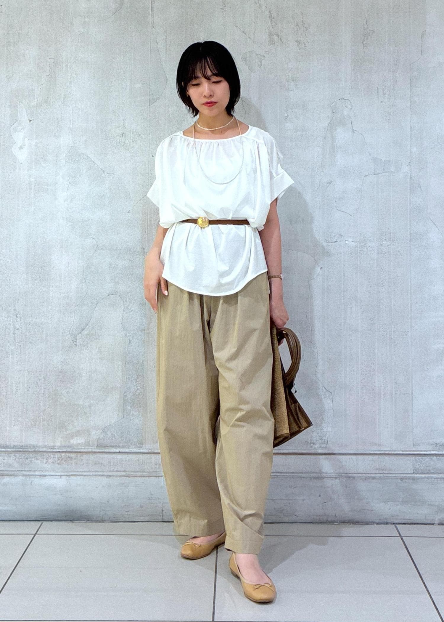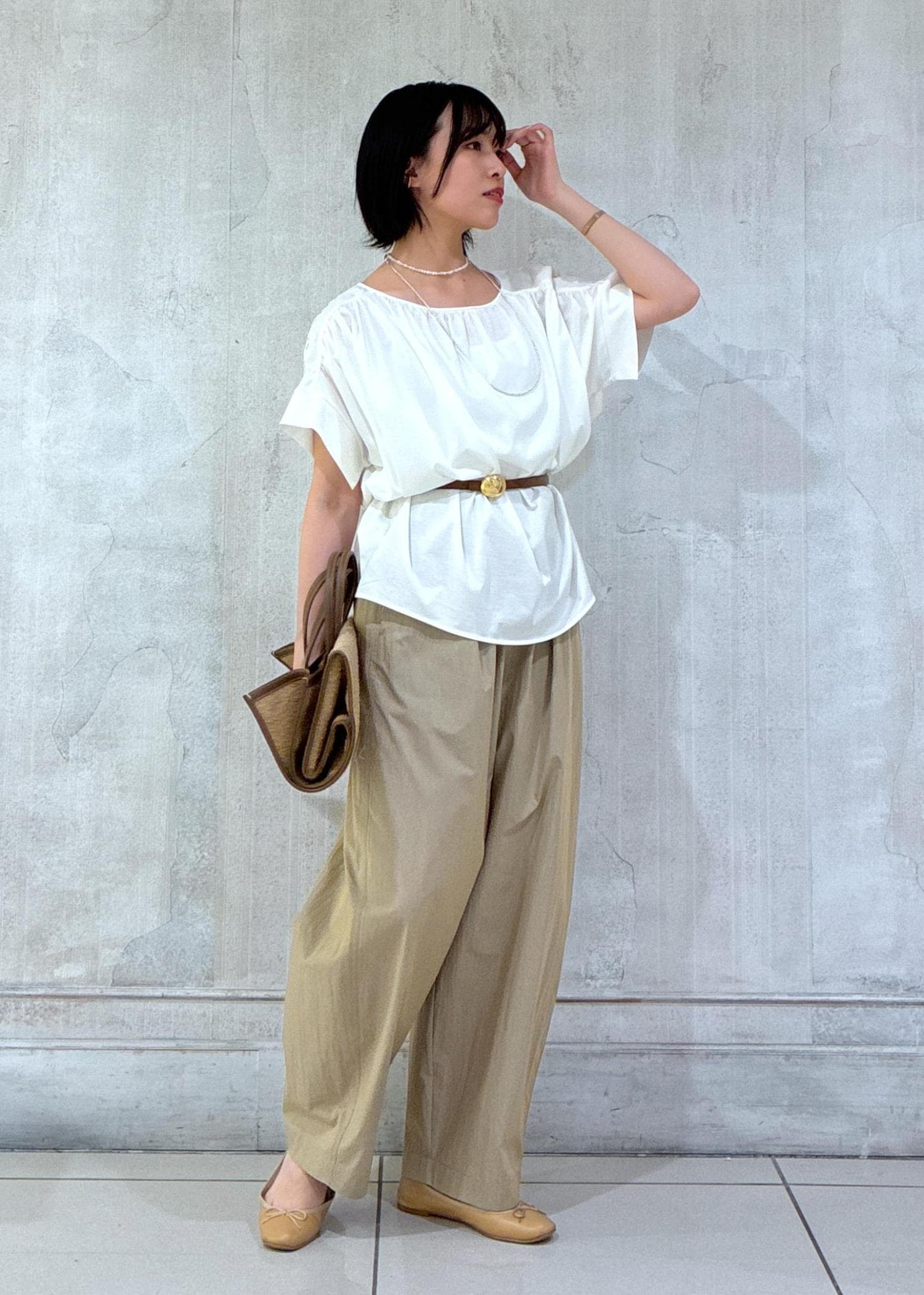 徐々に湿度も上がってきて、サラッとしたリラックス感のある素材を身に付けたくなってきたので、今回は新作のコットンアイテムたちを活用してコーディネートを組んでみました!