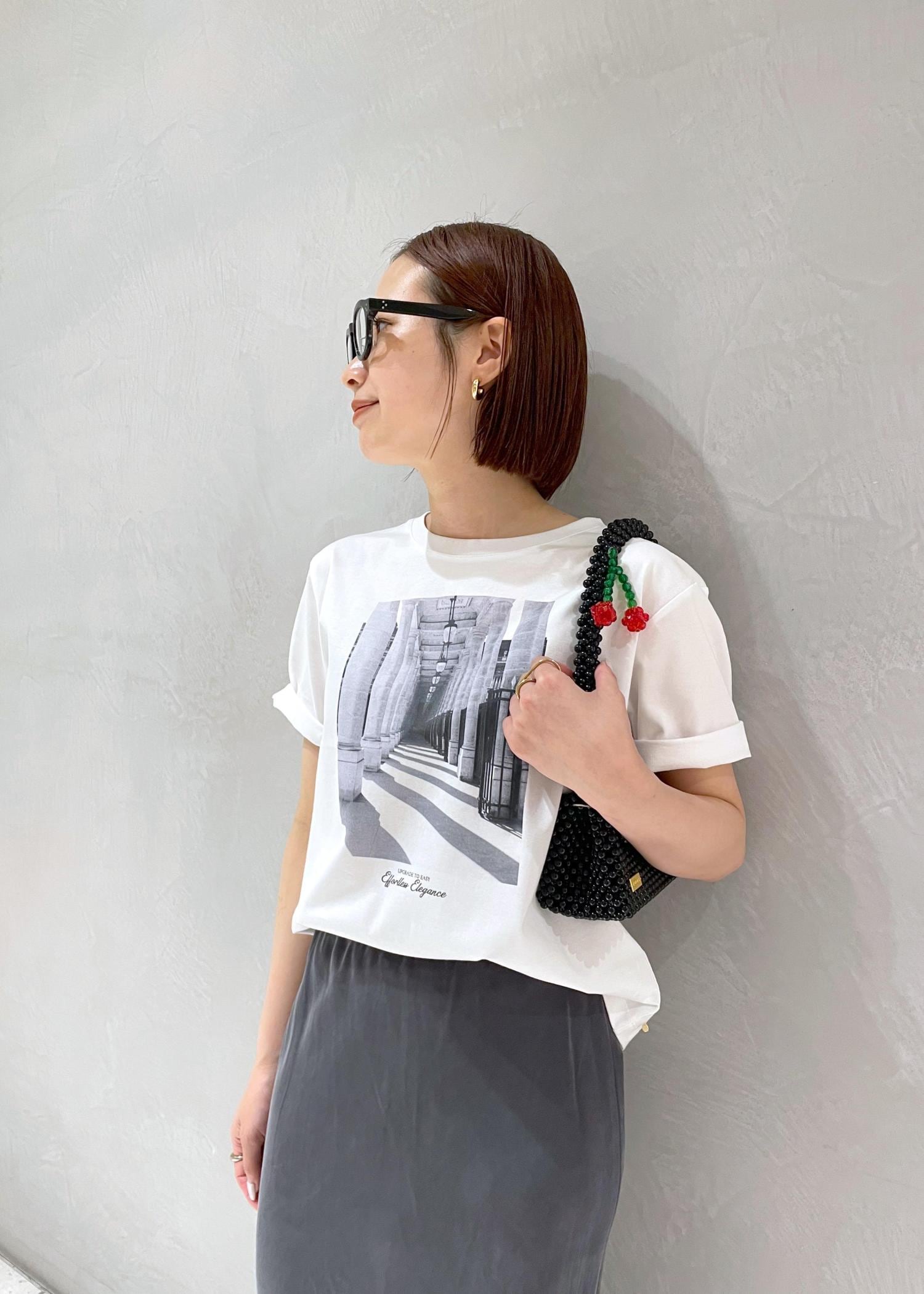ROPÉプリントTシャツ/イージーケアホワイト系 / F¥8,800レビュー161cmでフリーサイズ着用。