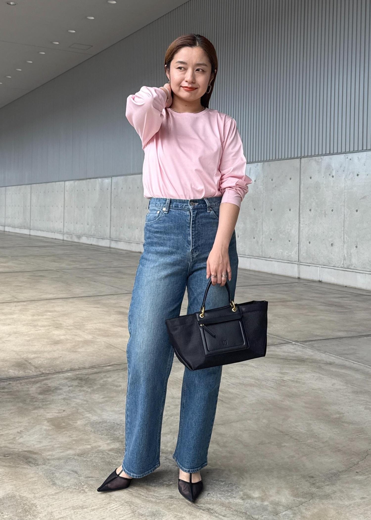 春色ピンクを取り入れたスタイリング