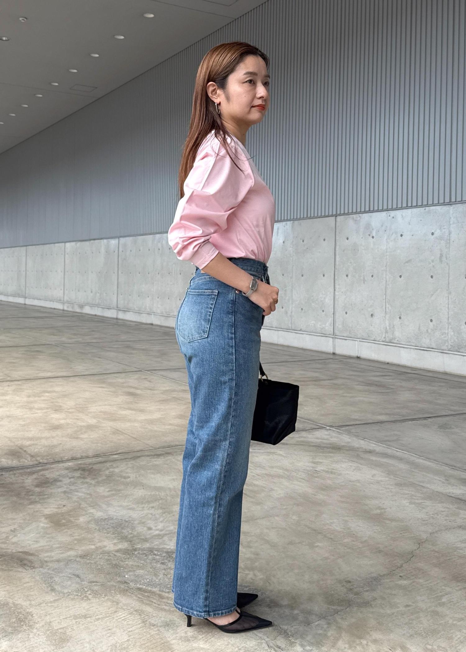 通常通り38サイズでジャストでした。ハイウエストでヒップラインから足向けて綺麗なラインが特徴的です。ひざ下からスッキリとしたストレートラインなので、シューズはパンプスからスニーカー、ブーツまで幅広く合わせていただけます◎