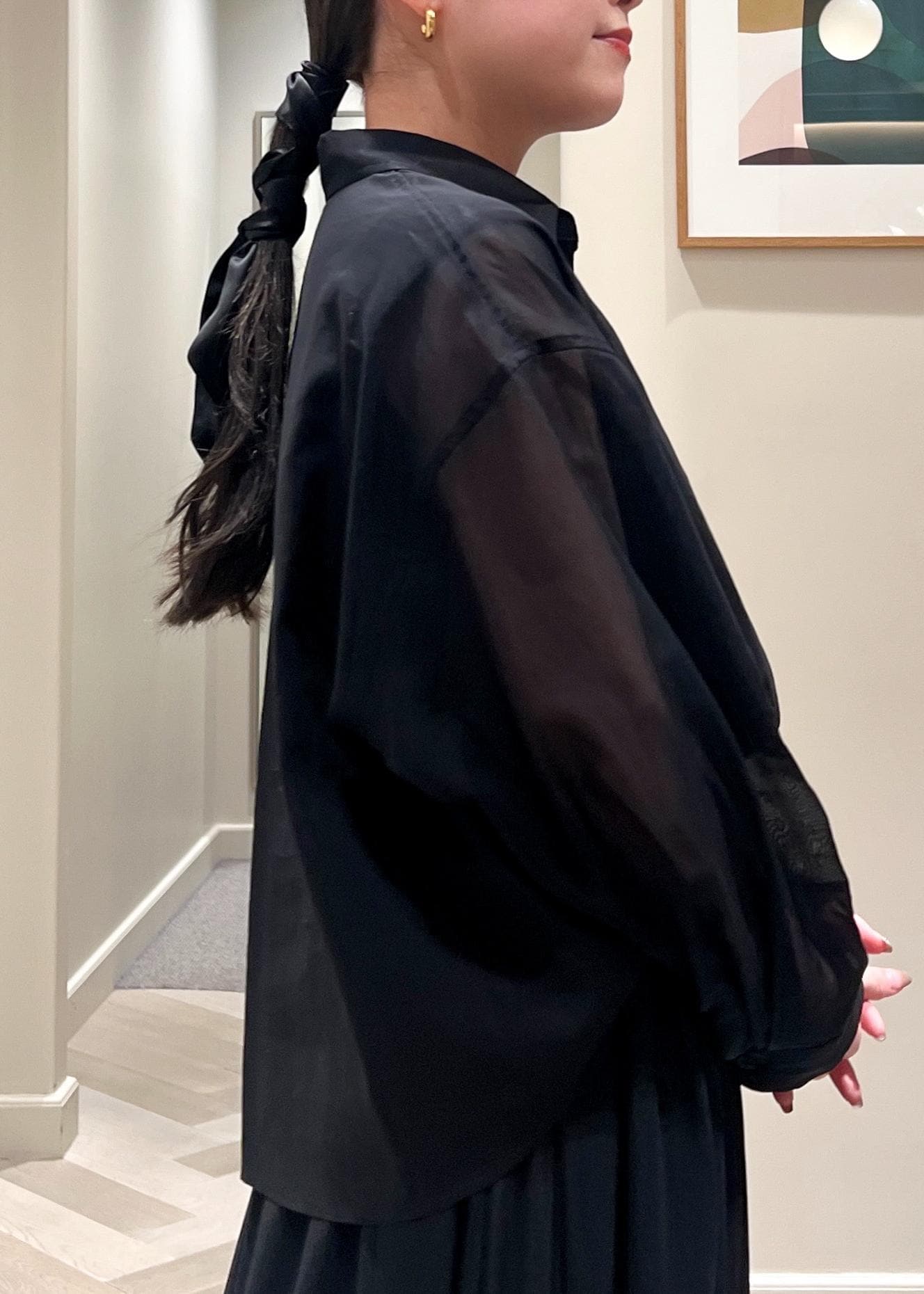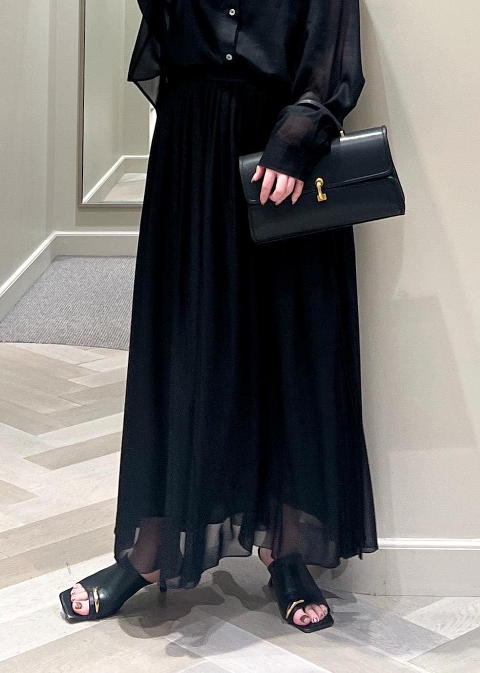 シアーシャツ×ギャザースカートの