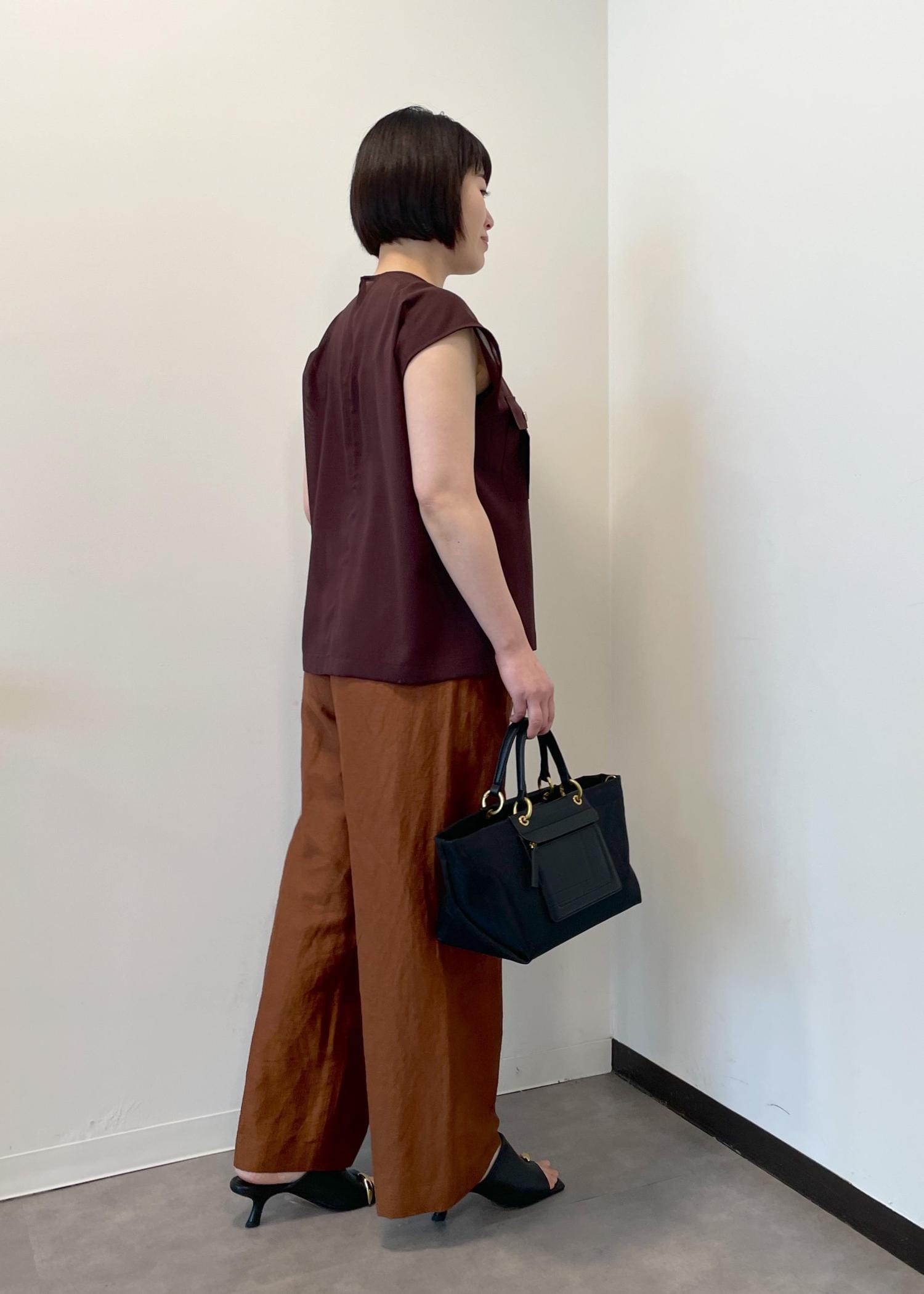 アウトレットROPÉ【洗える】ビスコースリネン スラブスリータックパンツ/一部セットアップ可能ブラウン / 36¥12,650レビュー155cmで36サイズを着用しています。