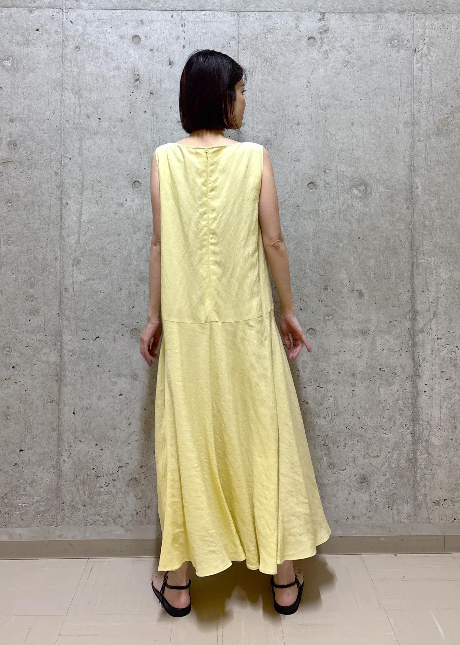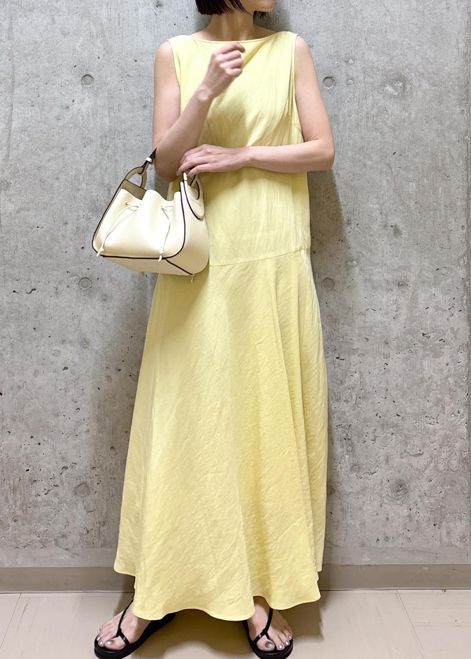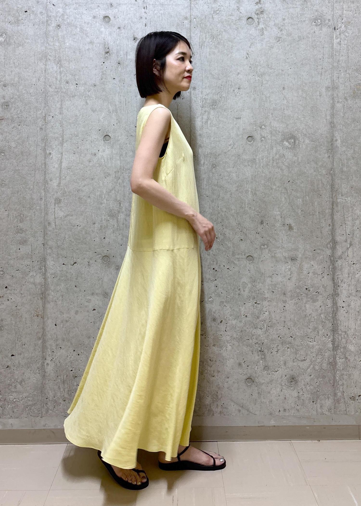 肌馴染みが良いイエローを主役にしたワンピーススタイル。