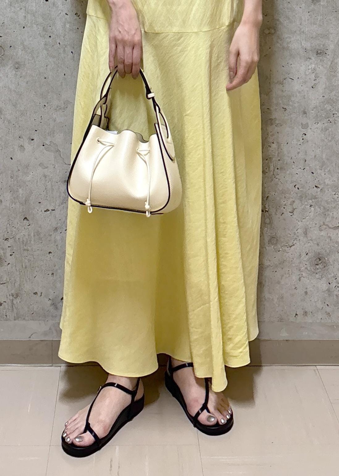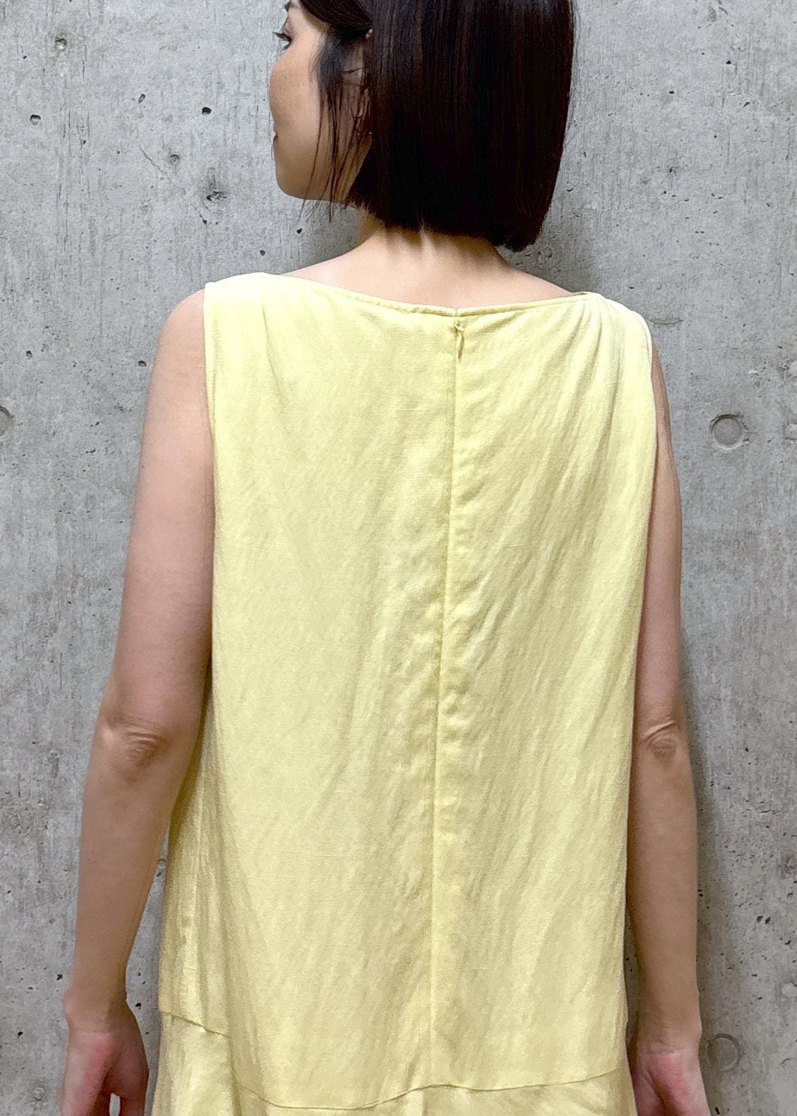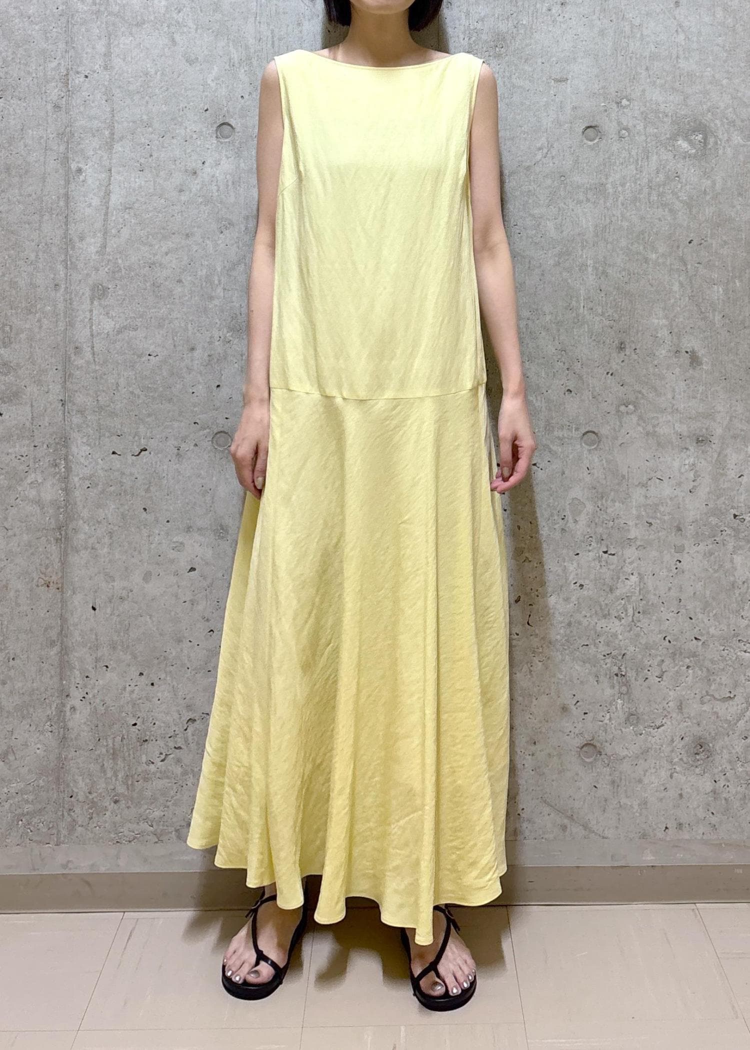 肌馴染みが良いイエローを主役にしたワンピーススタイル。