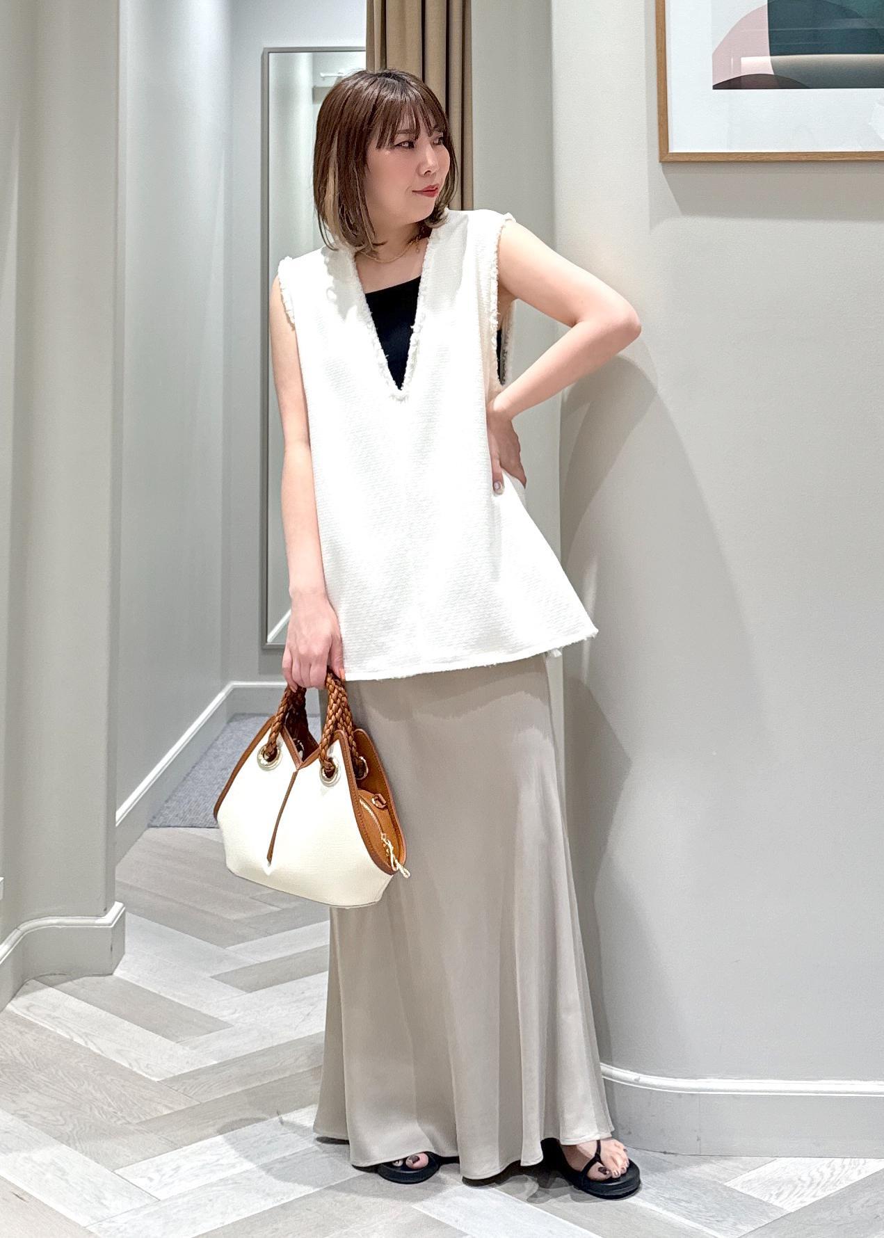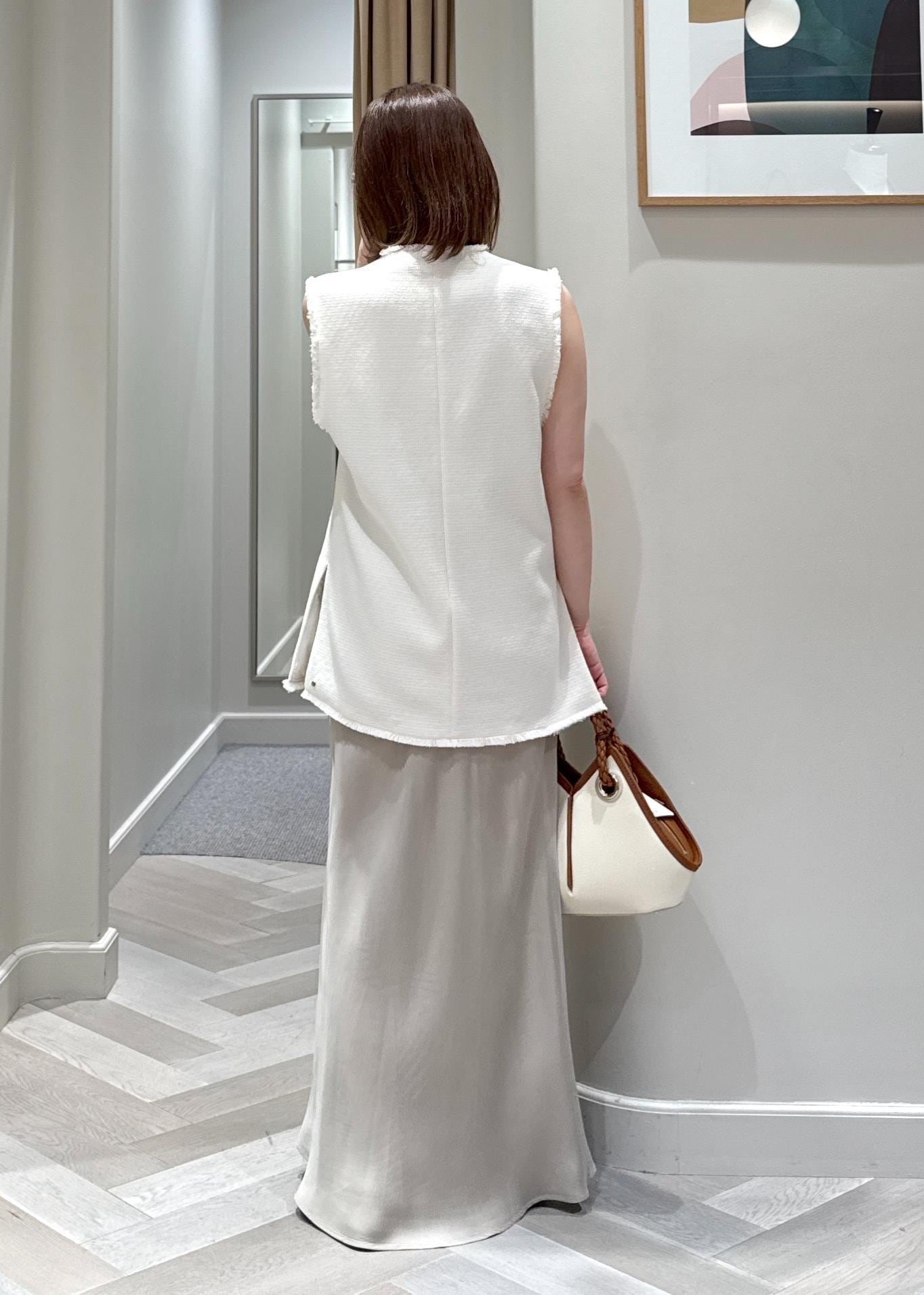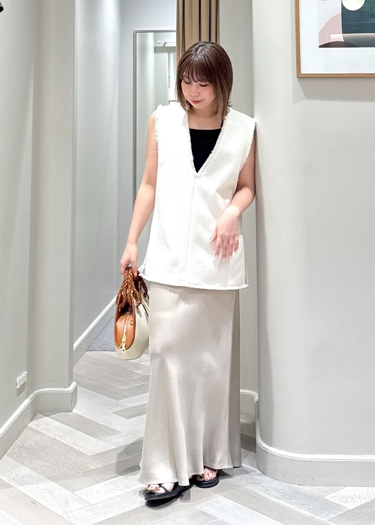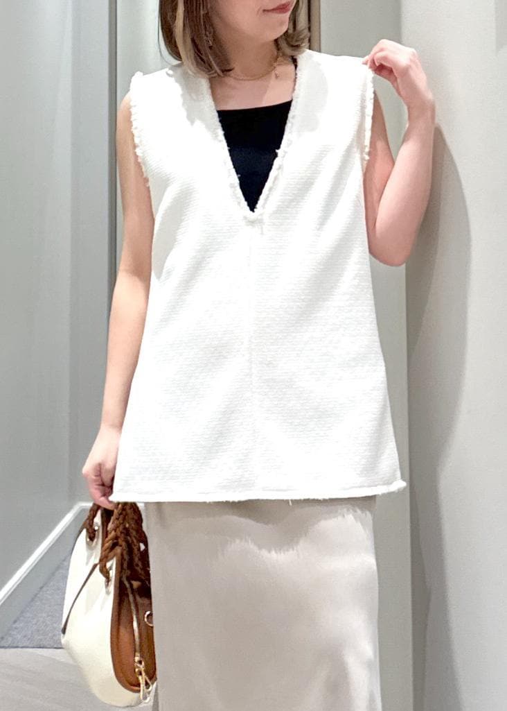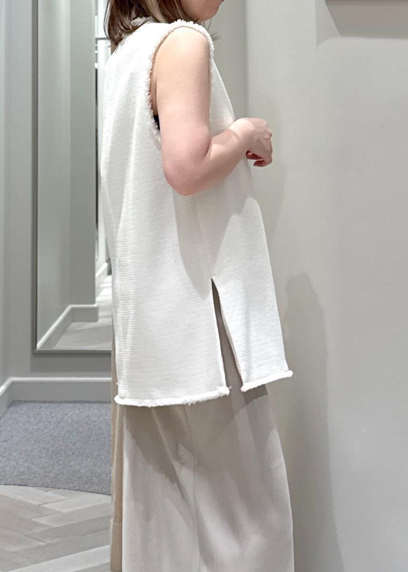 ノースリーブでさらっと着用できるお勧めのジレです。