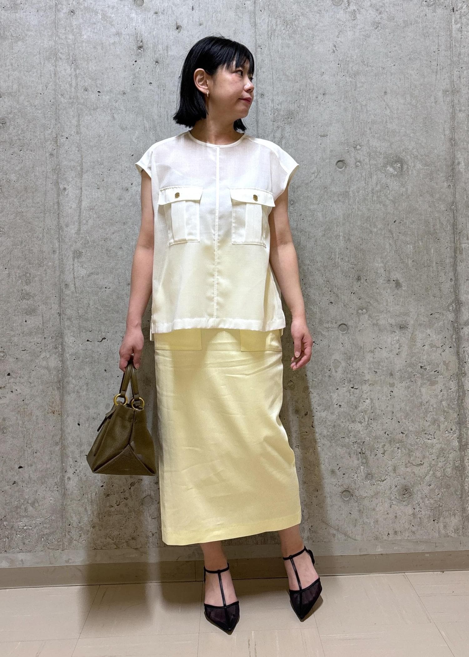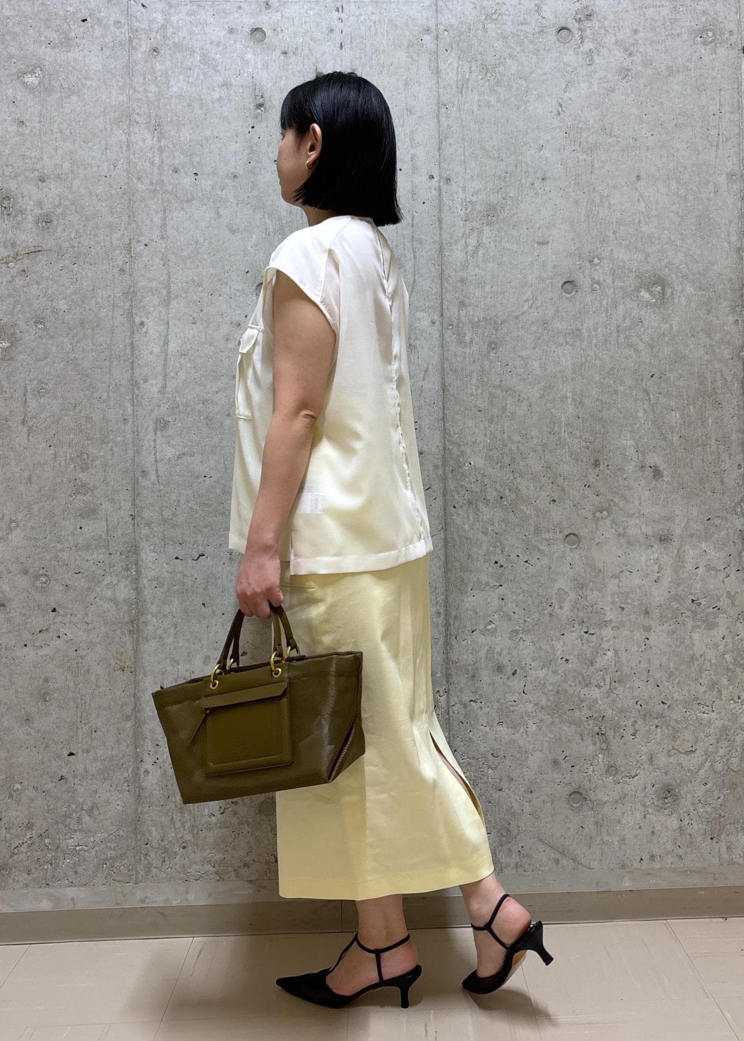 差し色にはイエロー×カーキをプラスして