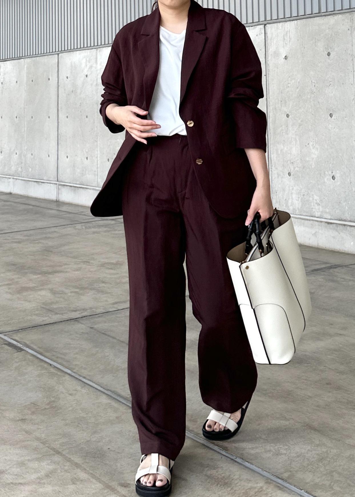 アウトレットROPÉレーヨンリネン センタープレスパンツ【セットアップジャケット・ワンピース対応】ブラウン / 38¥13,750レビュー身長161㎝で普段38サイズを着用。