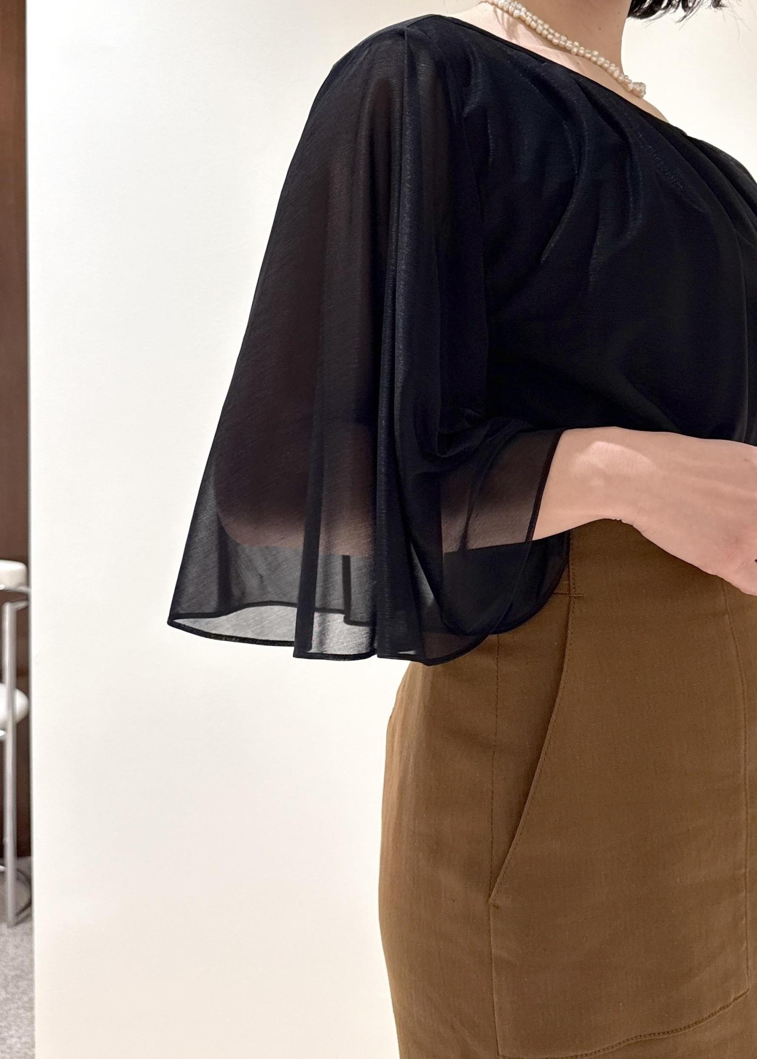 アウトレットROPÉ【洗える】ブライトネスヤーンギャザーブラウス/セットアップ対応ブラック / F¥12,320レビューフリーサイズですが、ネック部分開き過ぎていないので気になりませんでした。袖が膝くらいまであり、シアー感があるので見た目も涼しげな印象でこれからの時期におすすめです。