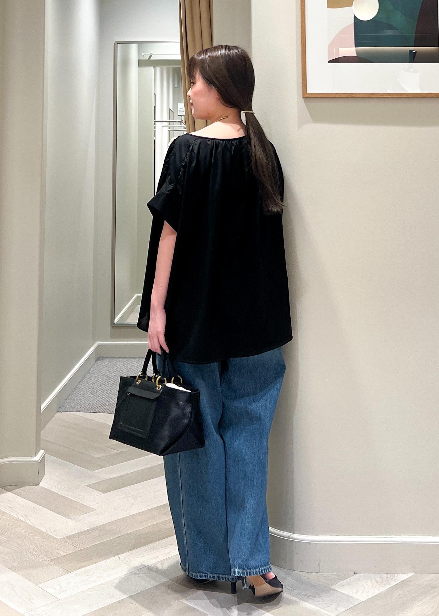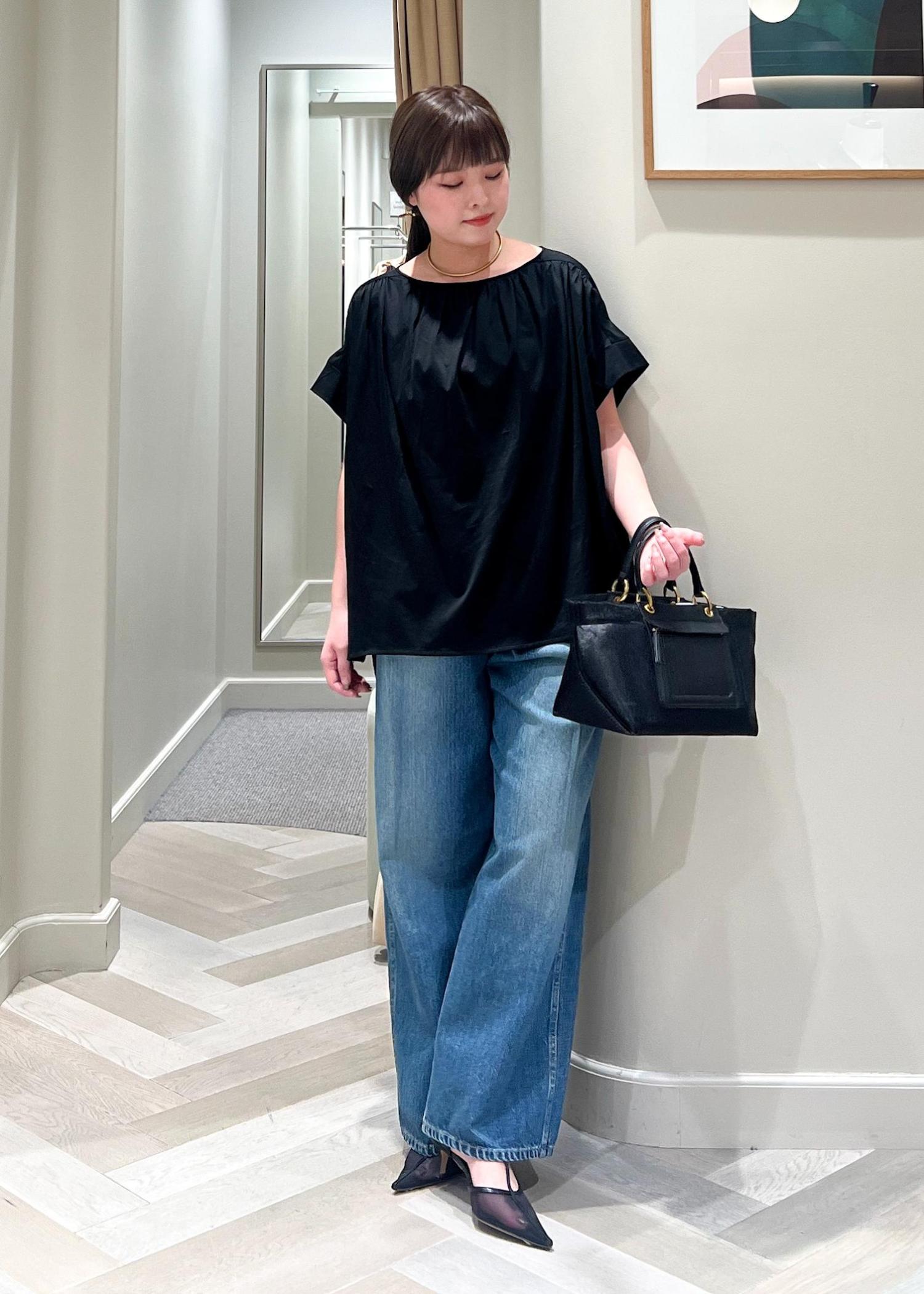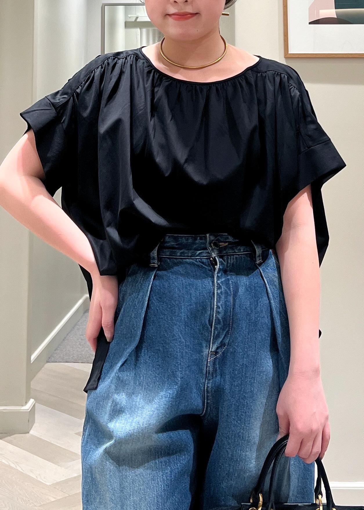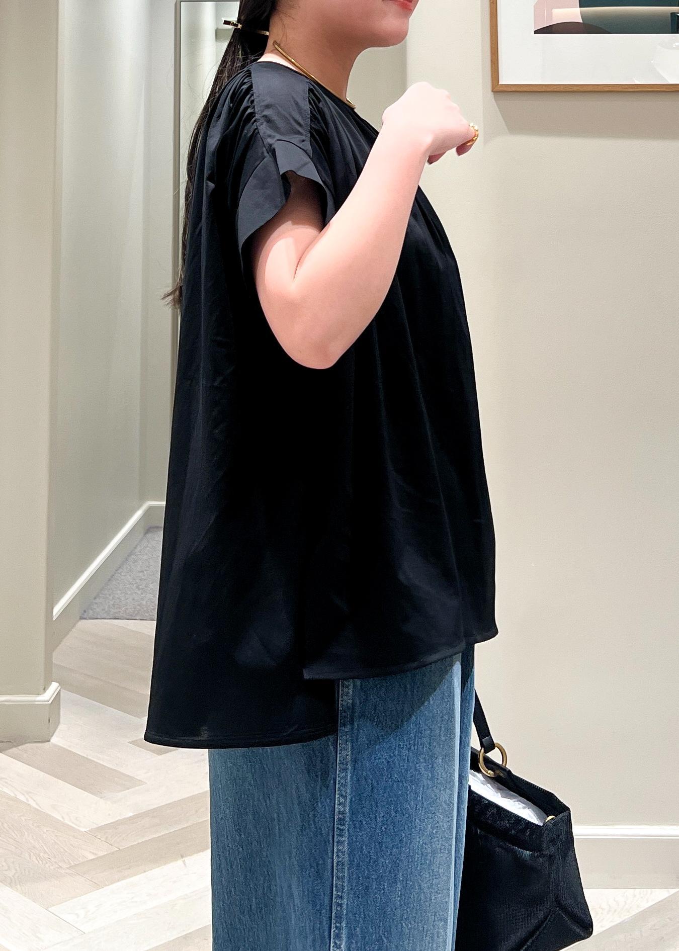 【洗える】クリア天竺ギャザー半袖プルオーバー/お仕事服