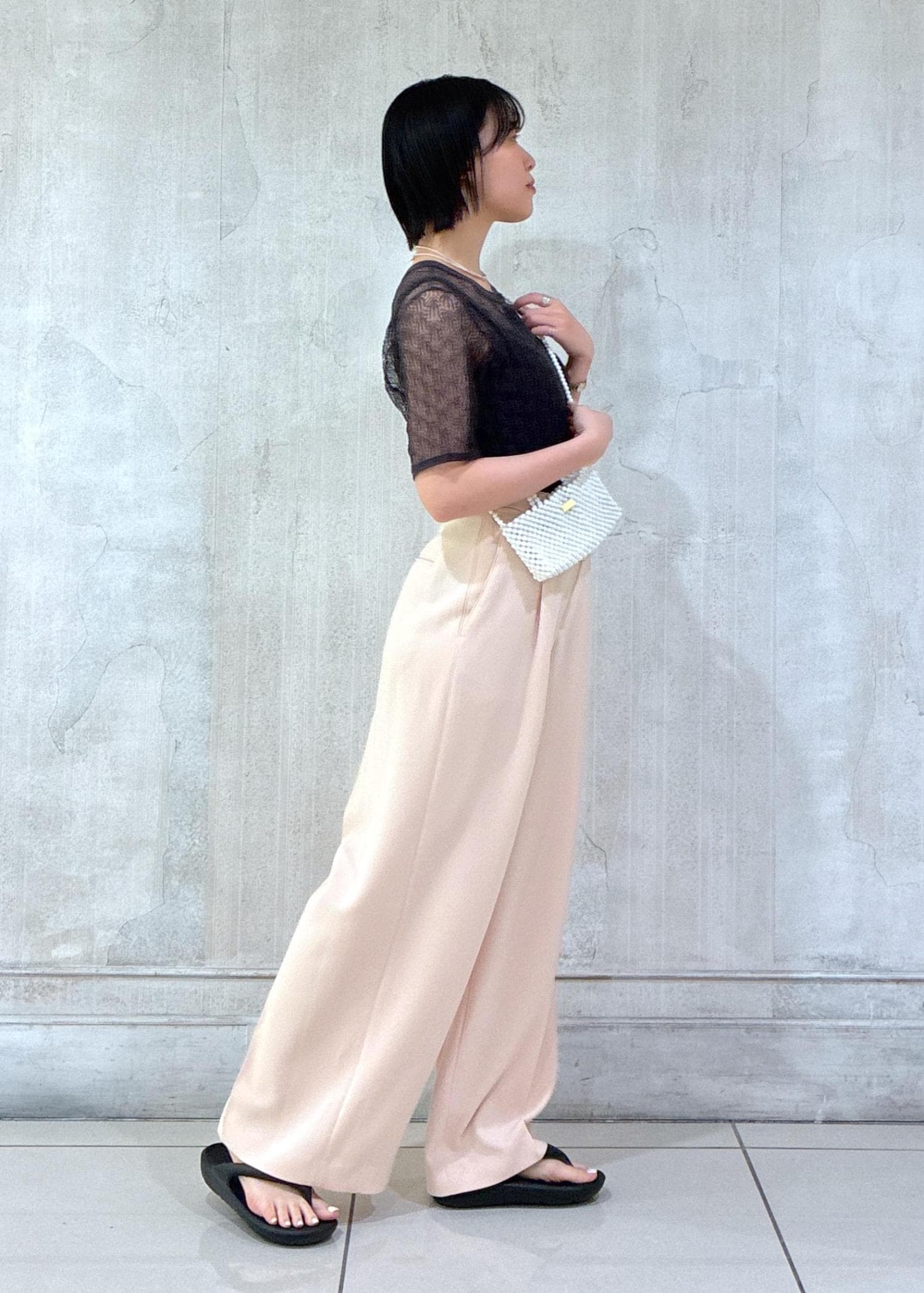 気分が上がるピンクカラーは、甘すぎないワイドパンツなら大人も取り入れやすく、相性の良いダークグレーのトップスと合わせてシックにまとめてみました♪