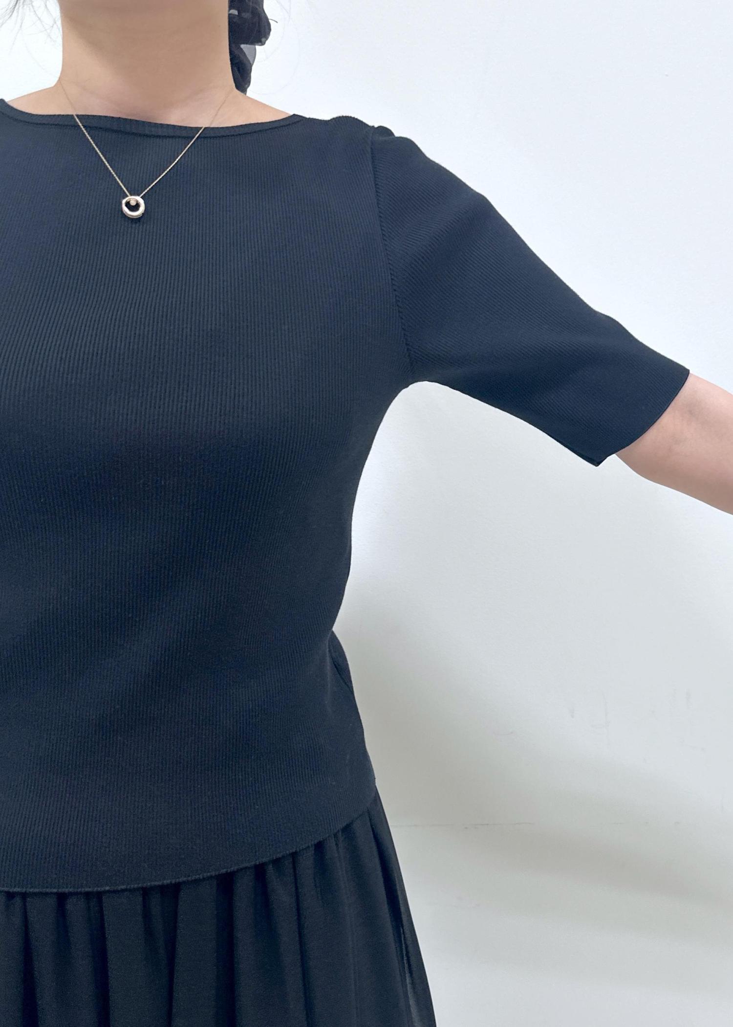 アウトレットROPÉ【洗える】テレコ5分袖ニットプルオーバーブラック / F¥8,250レビューサイズ感はコンパクトですが