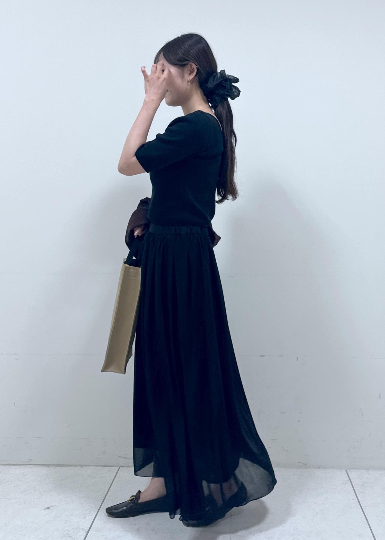 サイドにプリーツのあるデザインと柔らかな素材なので、動くたび揺れ感がとってもキレイです◎