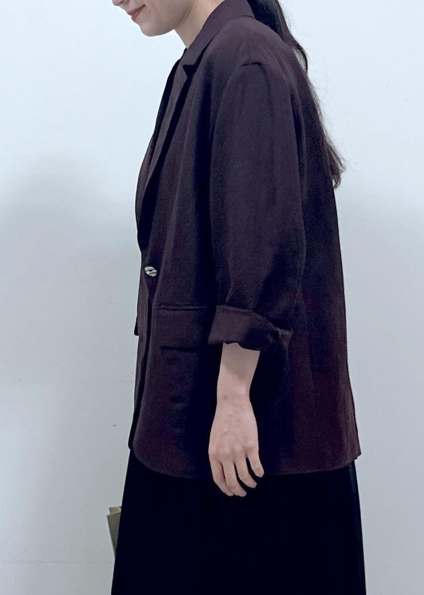 アウトレットROPÉレーヨンリネン ライトジャケット【セットアップパンツ・ワンピース対応】ブラウン / 38¥26,400レビュー身長162㎝で着丈はヒップが隠れるくらいの長さです。