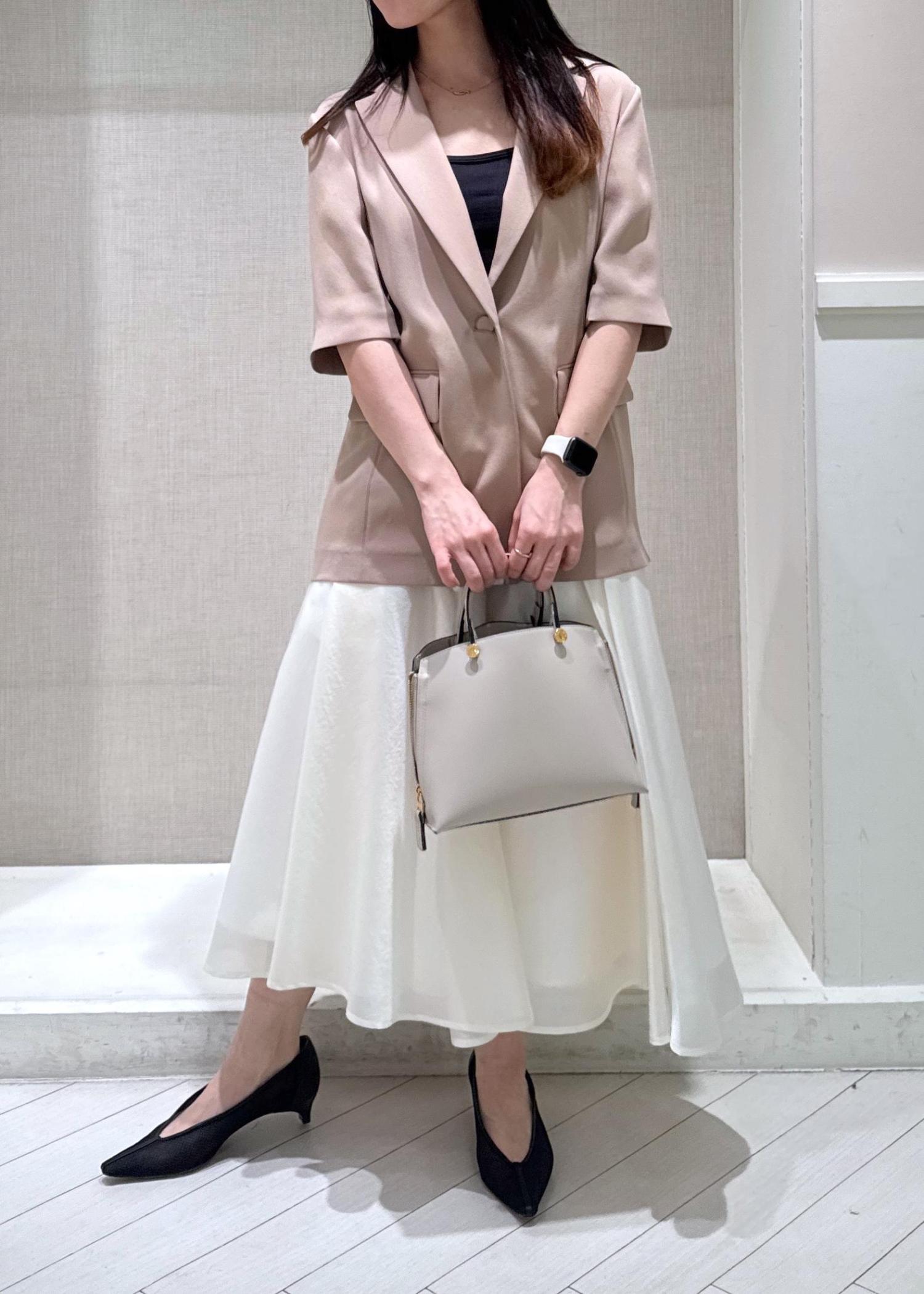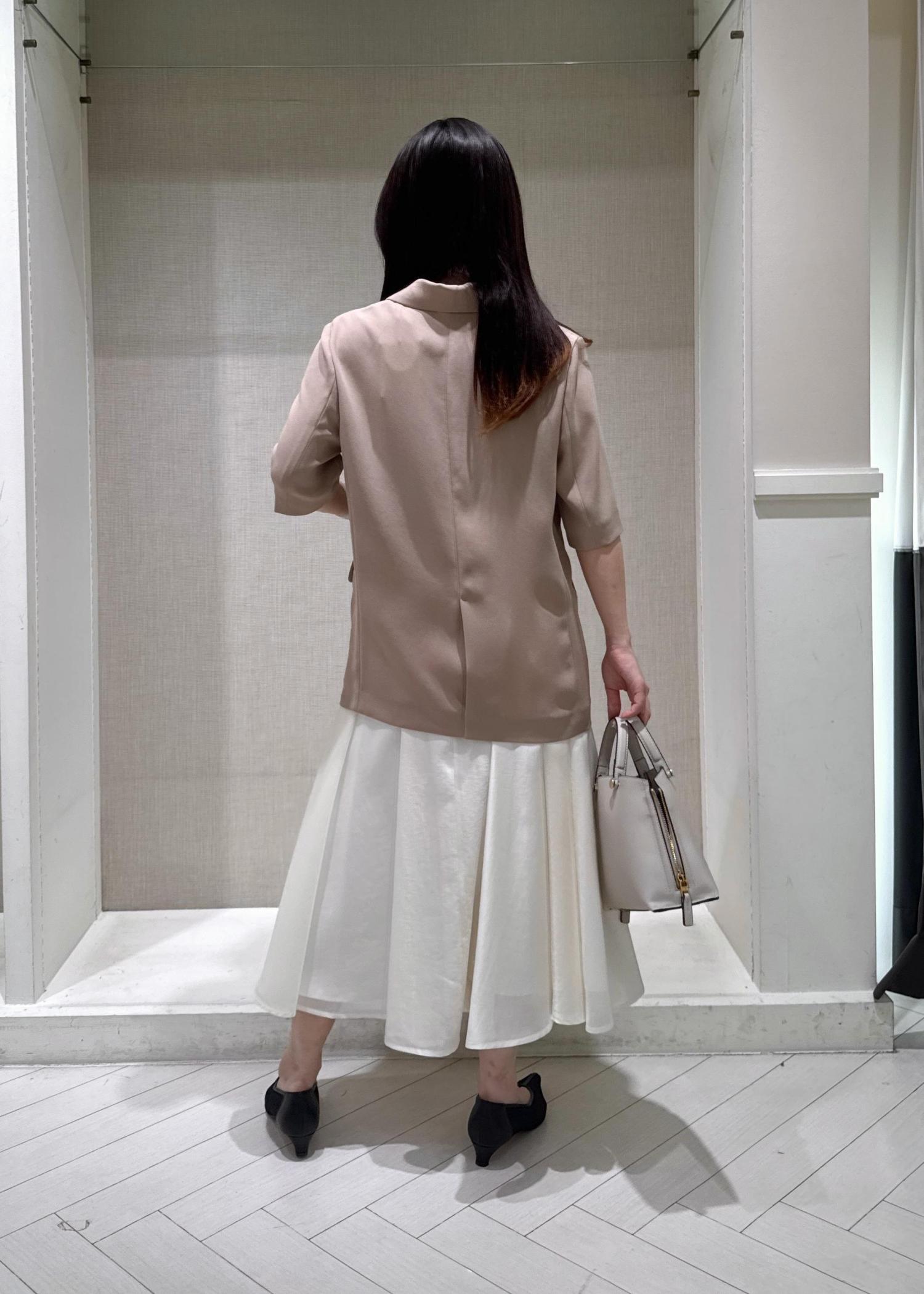 ROPÉ【洗える・カセット服・新色追加】トリアセバックサテン ハーフスリーブジャケット/セットアップ対応ベージュ / 36¥31,900レビュー肩幅はジャスト、見頃は程よいゆとりのあるジャケットです。袖丈は肘が隠れるほど。ご自宅での手洗い洗濯が可能なので夏でも安心して使えます◎
