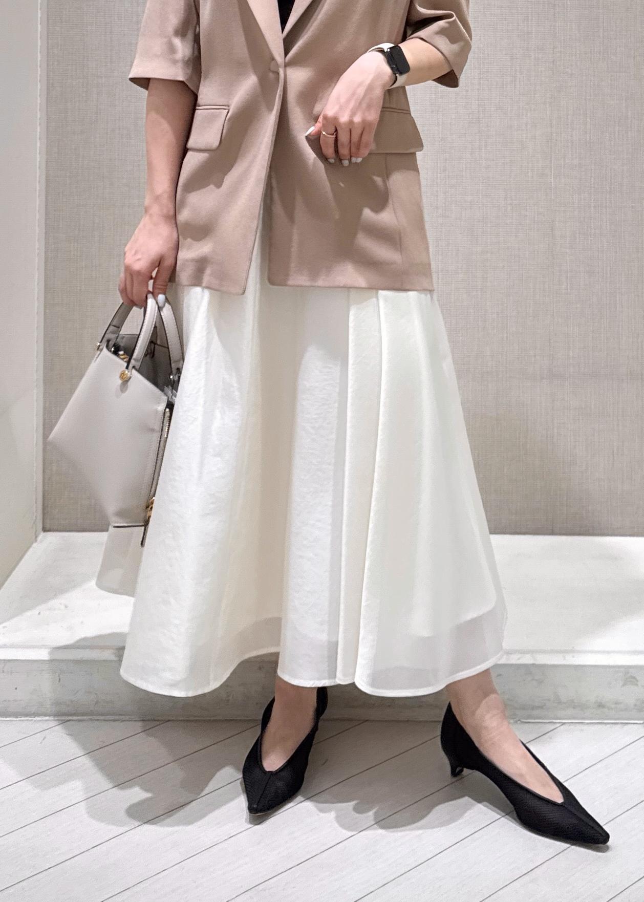 アウトレットROPÉ【洗える】シャイニーシアースカート/セットアップ対応オフホワイト / 36¥11,000レビュー身長150cmで足首が見えるほどの丈感なので低身長な方にも安心して着用していただけます。広がりすぎないAラインのシルエットがとても上品な1枚です。