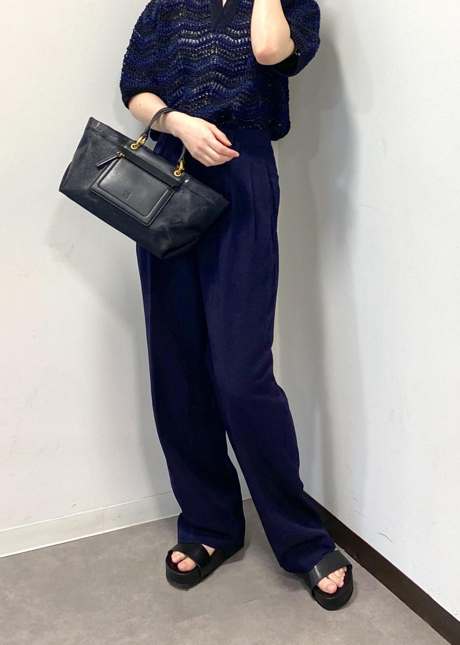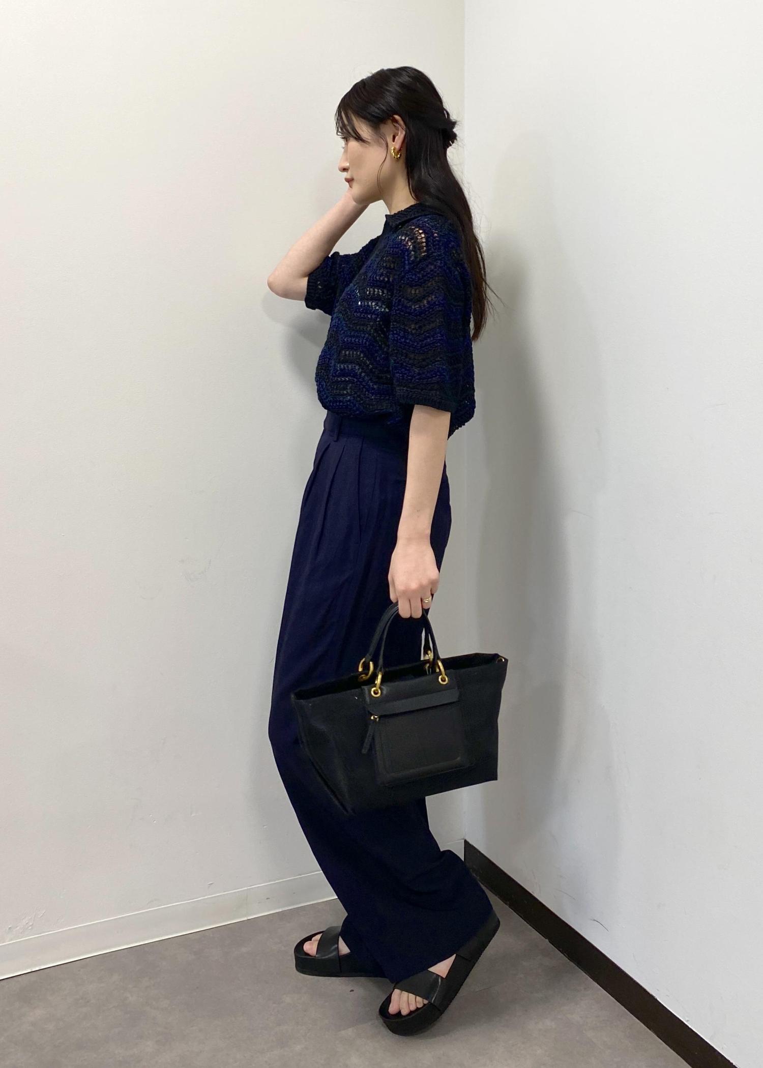 ざっくり編みが可愛いCOOHEM(コーヘン)のトップス、バッグはメッシュ素材のアイテムをチョイスすることで、程よい肌見せと透け感が出るように意識しました。