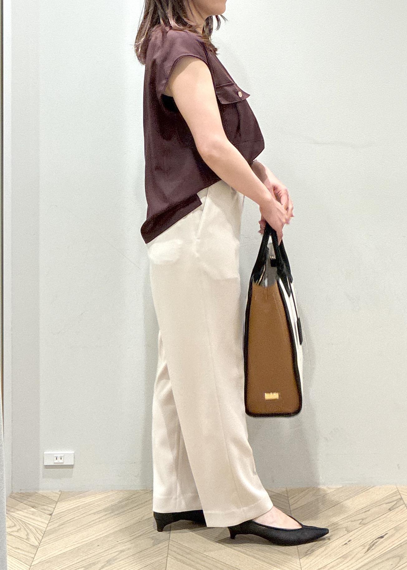 こちらのパンツはウエスト、ヒップ周りが割とゆったりめの印象でしたので、今回は36サイズを選びました。着丈もくるぶしが隠れる程度で私の身長で丁度良いです。