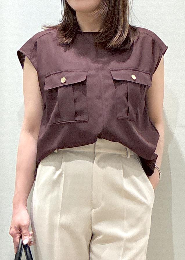 アウトレットROPÉ【洗える】サファリ シアーブラウスブラウン / F¥12,650レビュー158cmフリーサイズ着用。
