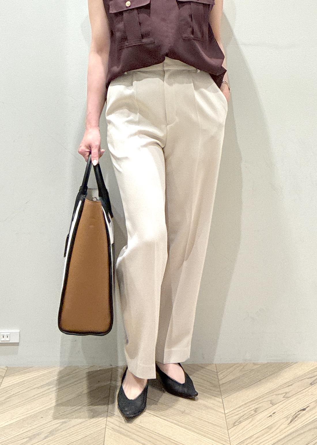 ROPÉ【洗える】ダブルクロステーパードパンツ(美人パンツ)ベージュ / 36¥25,300レビュー158cm36サイズ着用。