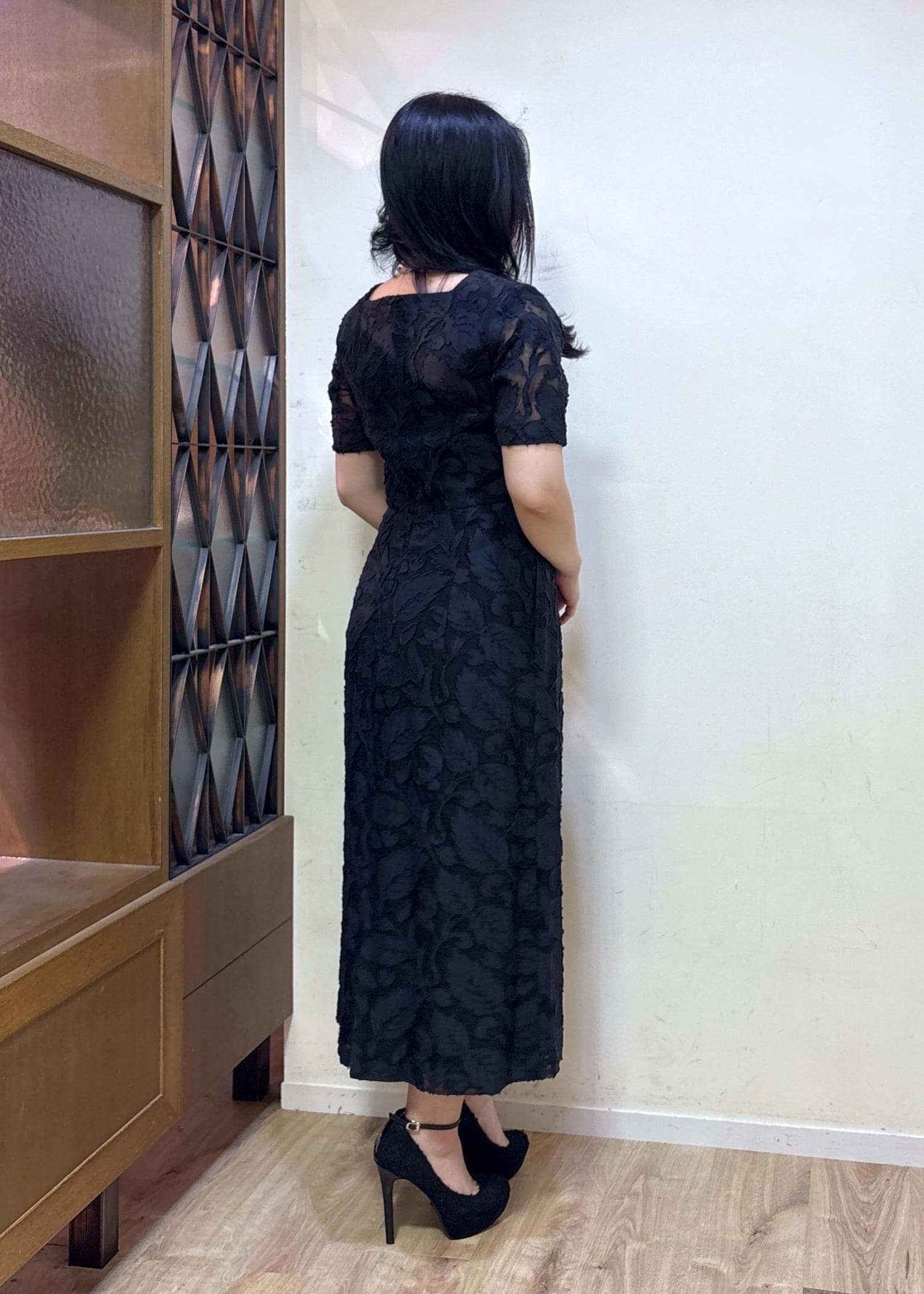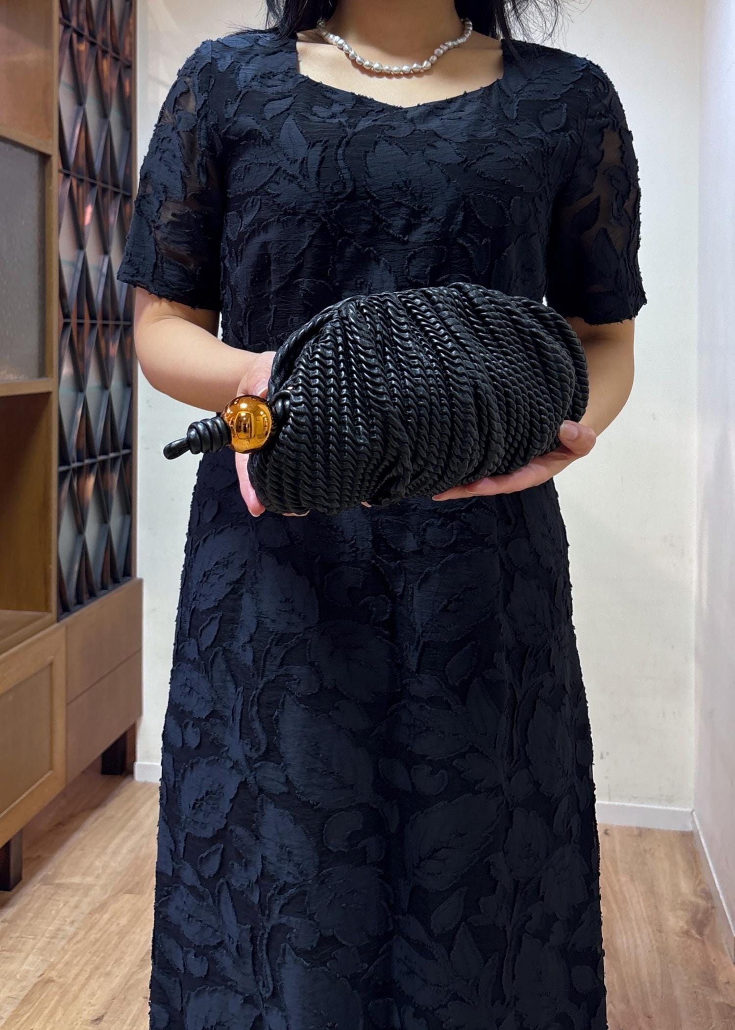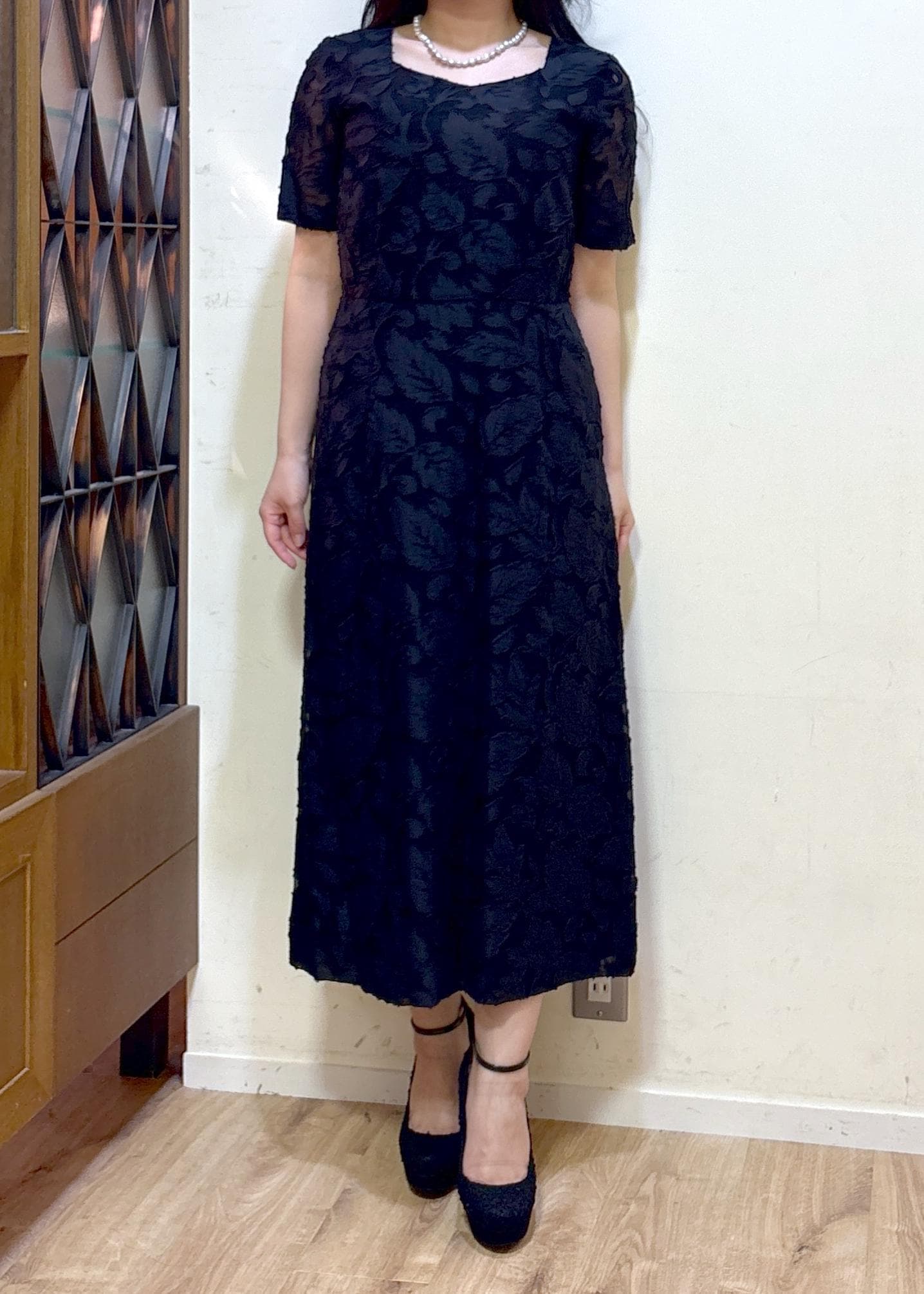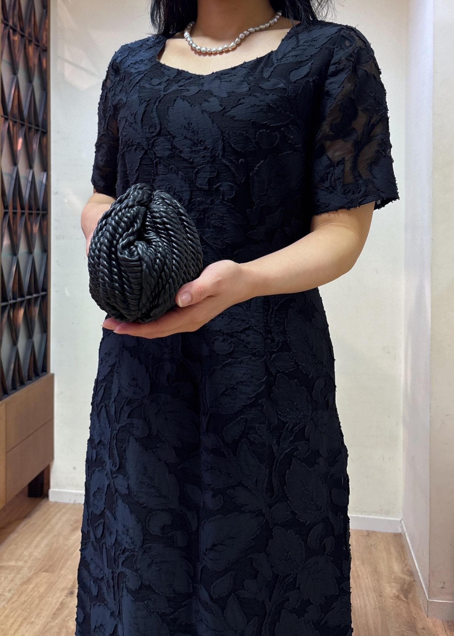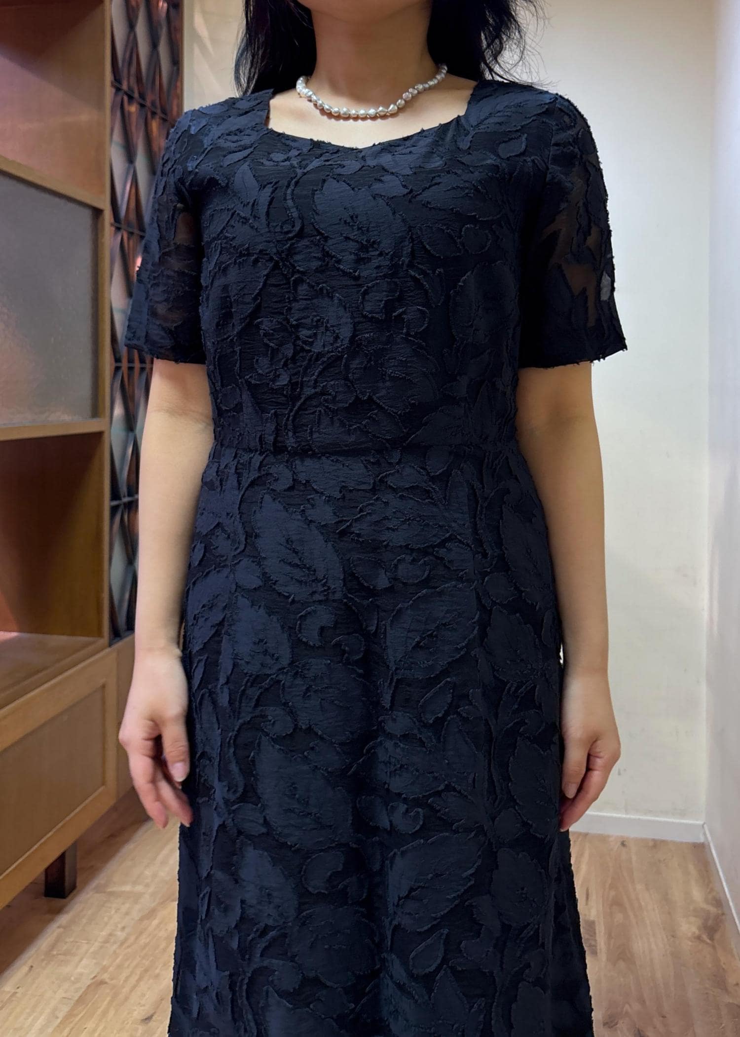 アウトレットROPÉ【洗える】スクエアーネックワンピース(ジャガード/サッカー素材)ブラック / 36¥16,720レビュー身長152cm 36サイズ着用